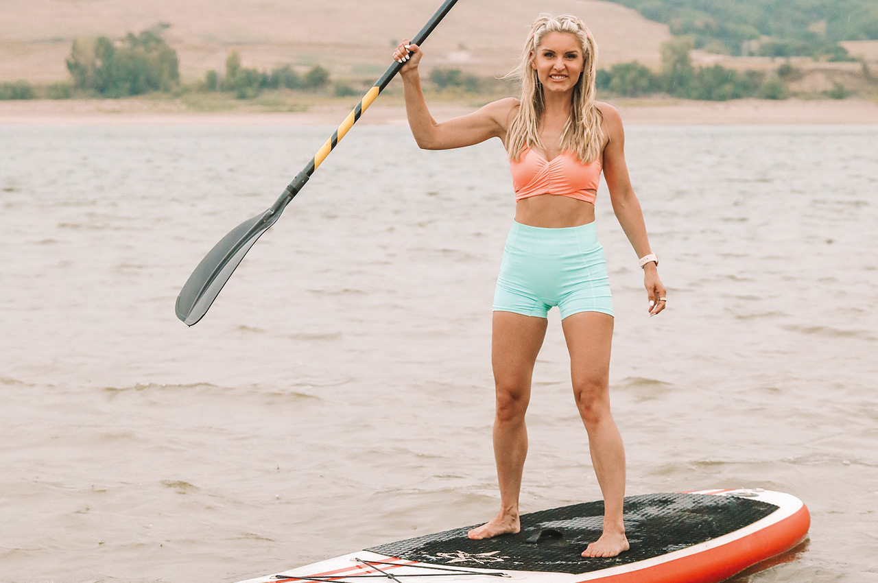 My favourite to do anywhere is paddle board because it’s a great workout for your full body. You work your core by testing your balance, your arms are working with each paddle and you get a killer legs and booty workout in!