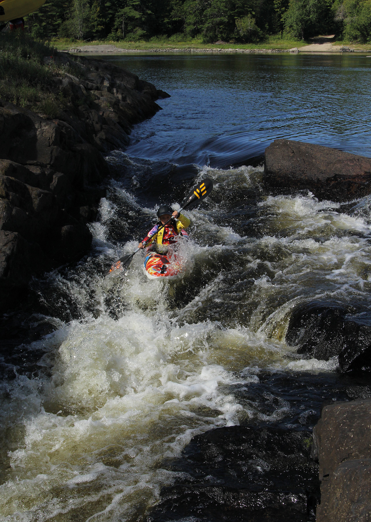 Since she learned to paddle, I’ve put her in a Dragorossi Pintail (a fantastic little boat that’ll fit into pretty much any little wave, has some speed to be a fair river runner, but not the most forgiving tail in super squirly stuff). A Fluid Spice (very forgiving, can play small features but is not the best at it). A Soul Disco (very forgiving river runner and easy surfer, but a little slow to get into some stuff or on rivers with lots of flat sections). A Riot Booster 60 (Probably the best of all of them as it’s just long enough for some speed, surfs small stuff well, is forgiving enough, but the low knees of those 25-year old boats suck).