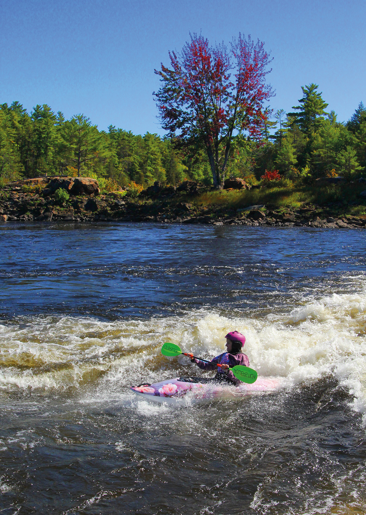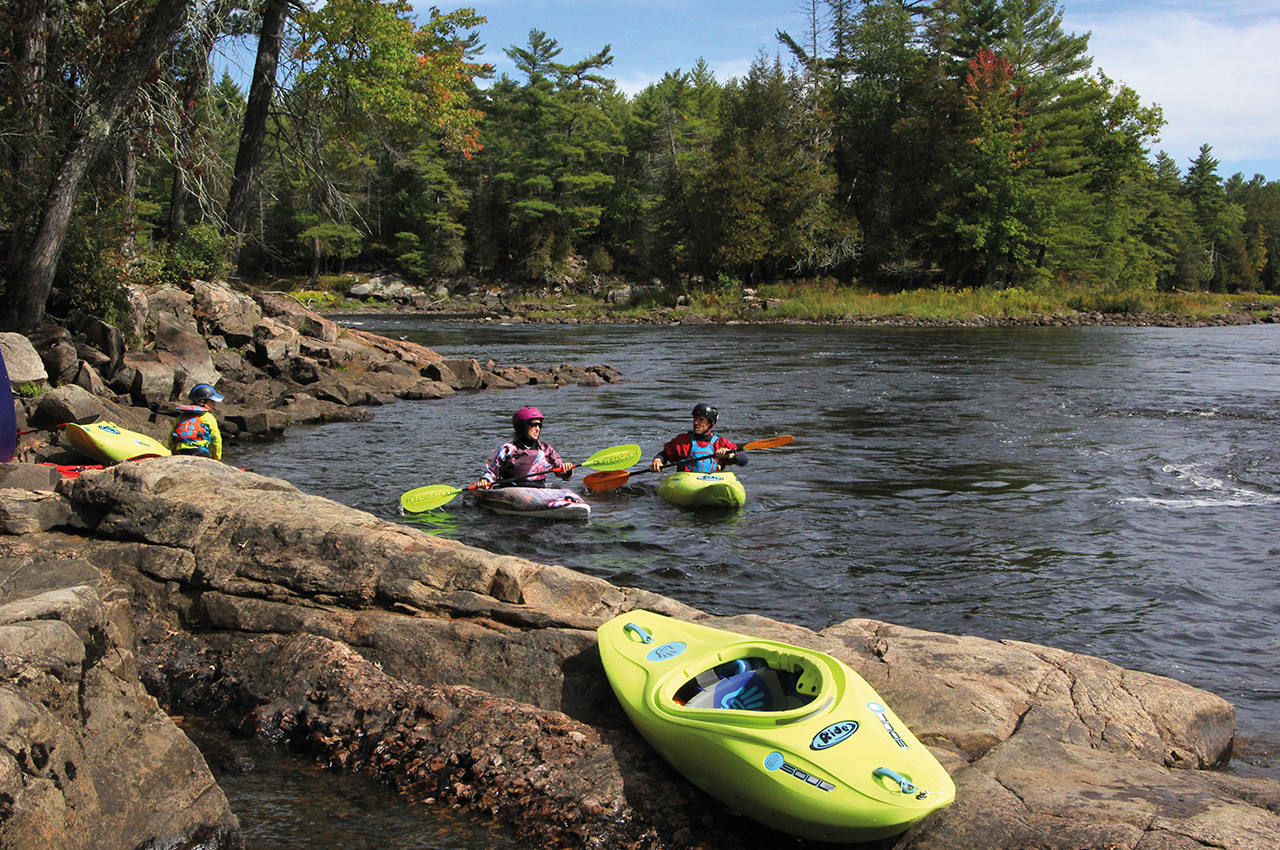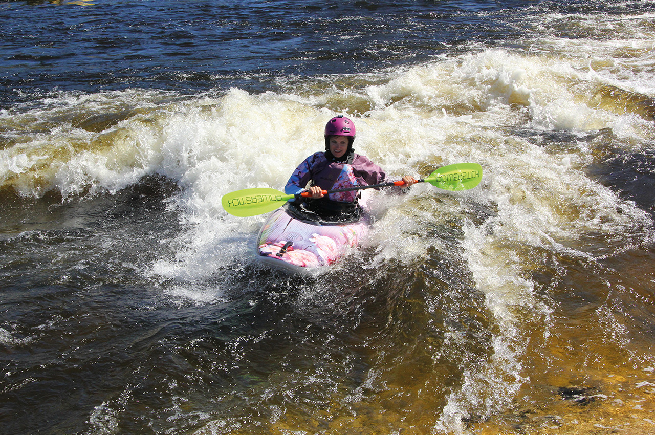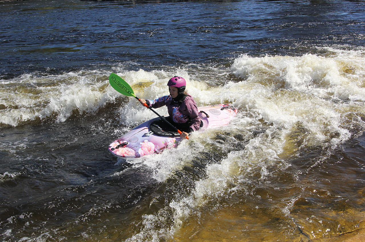 Surfing small waves, making eddy moves, learning to spin in small holes, and playfully looking for neat and interesting routes through well-known rapids. This leads to progression.