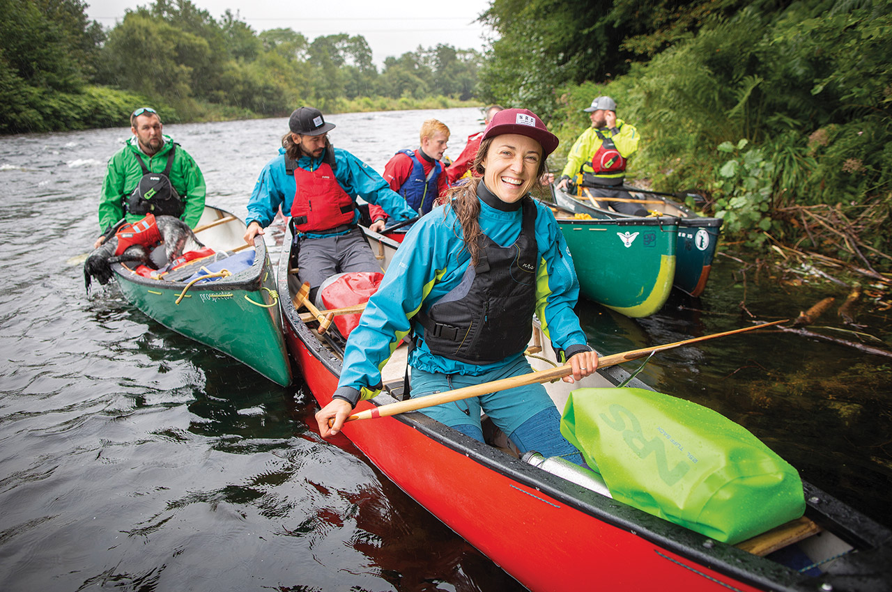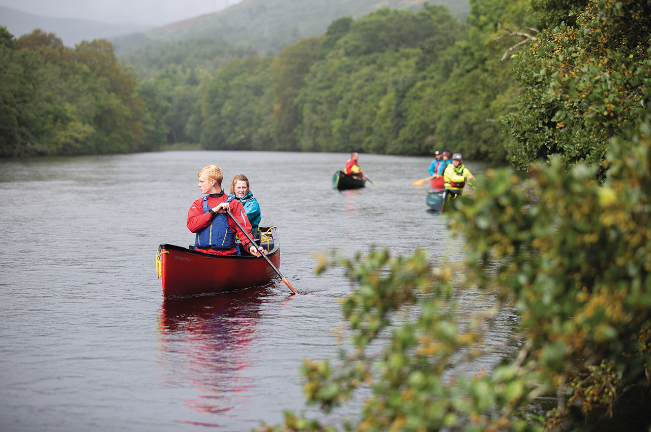 Tiptoeing over mud puddles and dancing between trickling streams, we’re fighting to keep our feet dry while portaging gear down to the River Tay. The mid-September showers have subsided, for the moment, and we use the break to load paddles, drybags, throwbags and a small dog, named Gigha, into whitewater canoes. But this is Scotland, so the impending drizzles, mist and fog only add to the ambience of a day paddling on the longest river in this water-rich country.