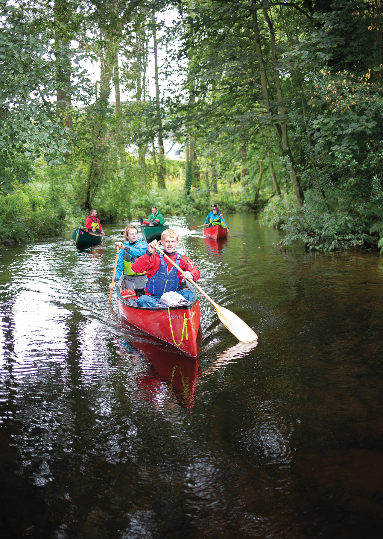 Warmed, hydrated and refuelled, energy levels spike, and we follow each other into side channels for impromptu exploration. The massive beech and maple trees overhead create a tunnel of green. We take advantage of the slow pace to keep an eye out for any of the critters that call the Tay home, like otters, salmon, lampreys, kingfishers and even the recently reintroduced Eurasian beaver. Slow-motion exploration gives way to chatter and jokes, and we drift under old stone bridges listening to our Scottish friends tell us snippets of history and local lore.