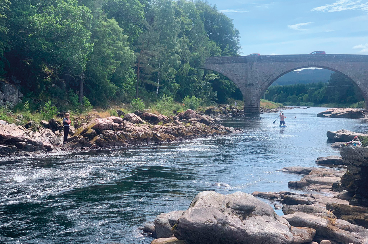 When we paddled the River Spey, the rapids were exciting because we didn’t keep stopping, but even though the river here was low, we still had to get out and look at them before deciding what to do. We met many fishermen and ladies, and they were all lovely and happy to talk to me; most said they were struggling with low-level water too, and they weren’t catching anything even though we saw fish jumping around us.