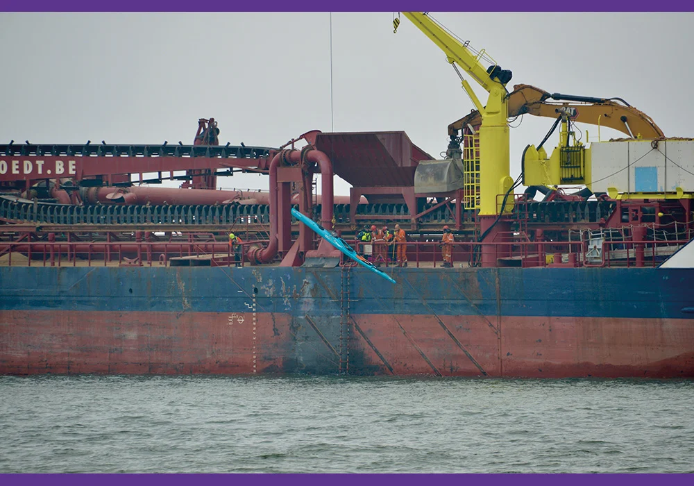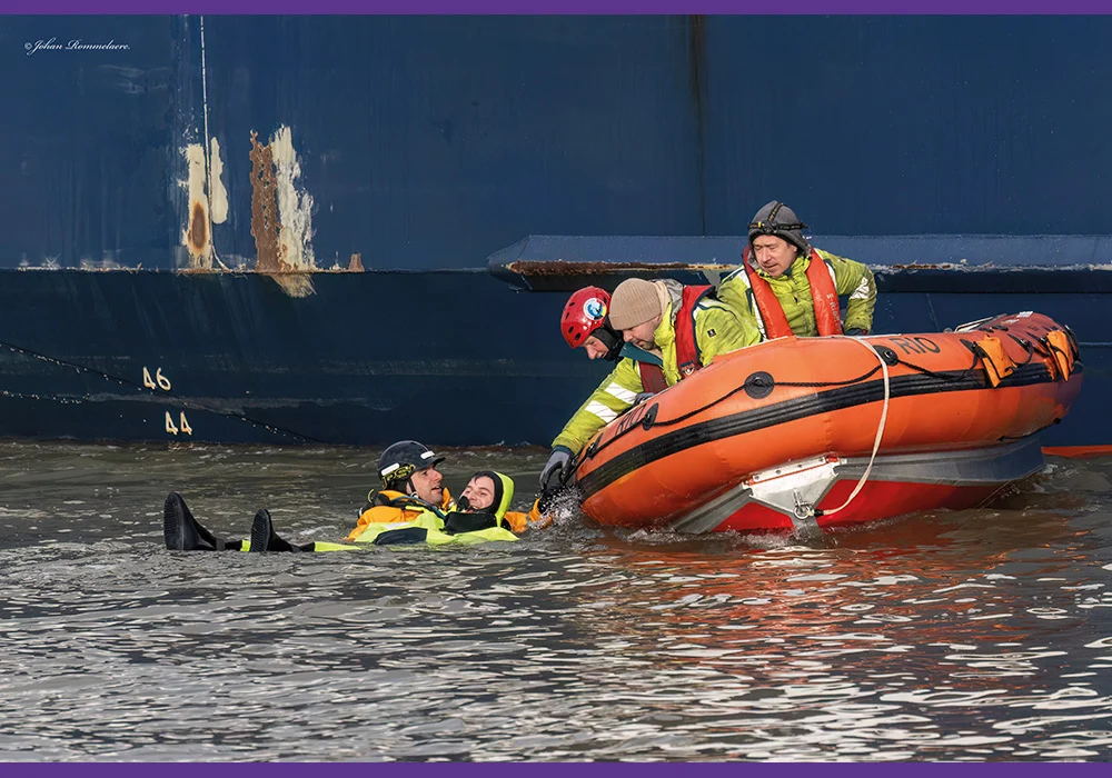 It has been done before on open sea, but a general repetition to improve cooperation between the dredger crew and ourselves. Recently, we got the invite. They are called orders (laughs) from Captain Ruben and his RIO crew. The ship was waiting for the next assignment and was moored at the sand extraction site in the back of the harbour. The perfect opportunity for a full scenario in a controlled environment, followed by a load of different drills.