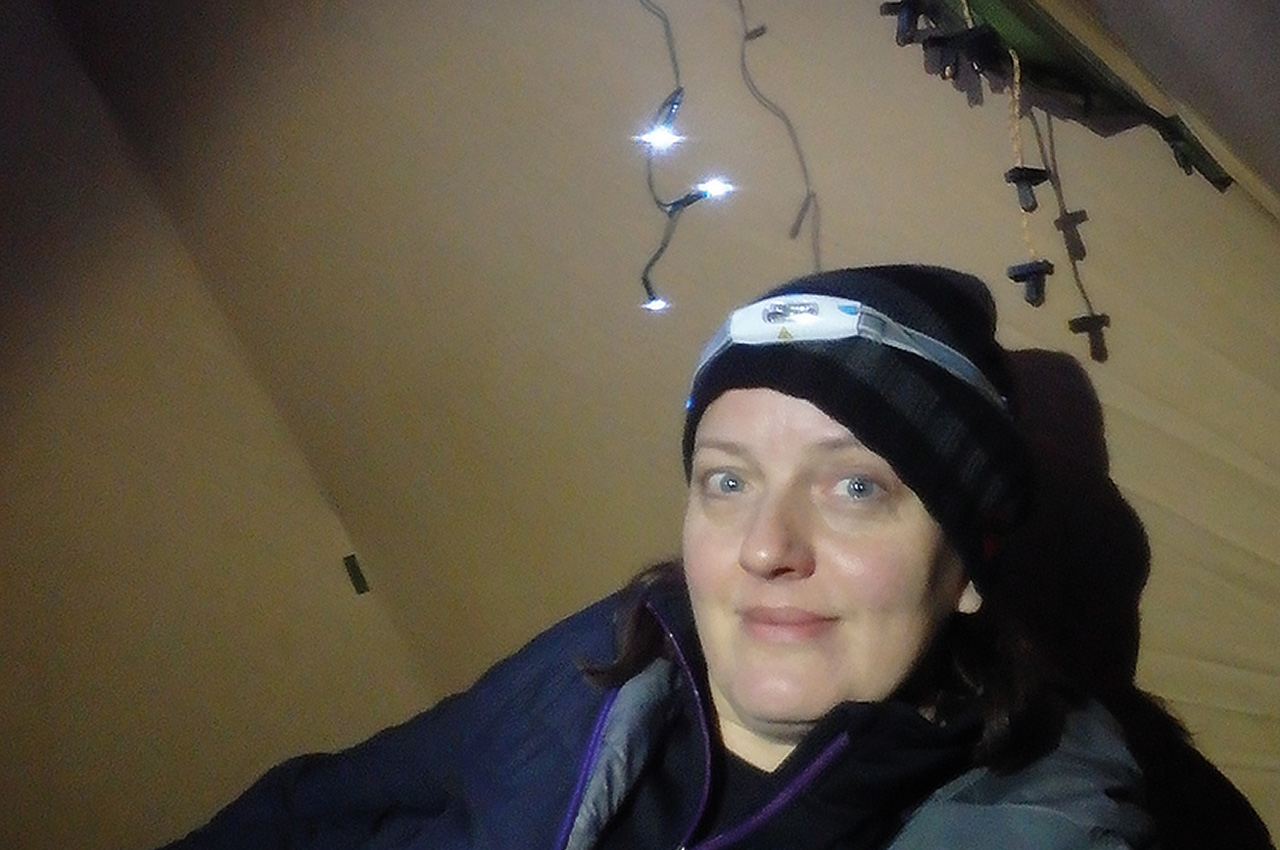The tipi, now lightly decked in peppering hail, still held the remnants of warmth inside. A faint hint of petrol in the air and a brief flare, signalled the stove to fire into life and heralded the start of around 13 hours of December darkness.