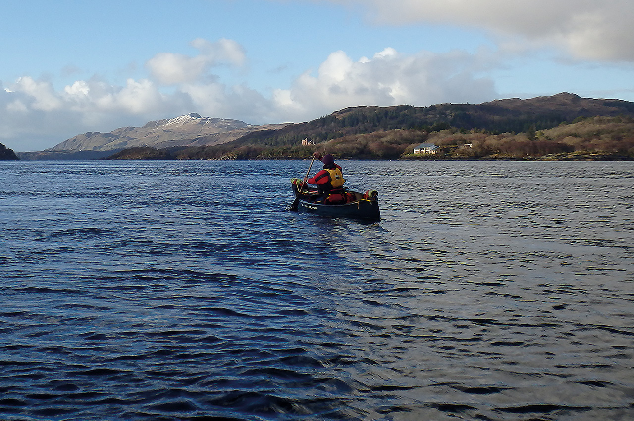 Adjusting our trim, we made slow steady progress into the headwind. The stunning expanse of Loch Sunart opened up in front of us. In my early days of solo paddling on open water, I would have found these conditions to be both extremely daunting and incredibly hard-going. Having subsequently spent many hours paddling on open water in conditions ranging from ‘ultra calm’ to ‘quite atrocious’, I now feel very much at home and at one with my boat. I’m always mindful however that the weather can change so quickly and the need to be able to deal effectively with whatever surprises Mother Nature may reveal, is paramount.