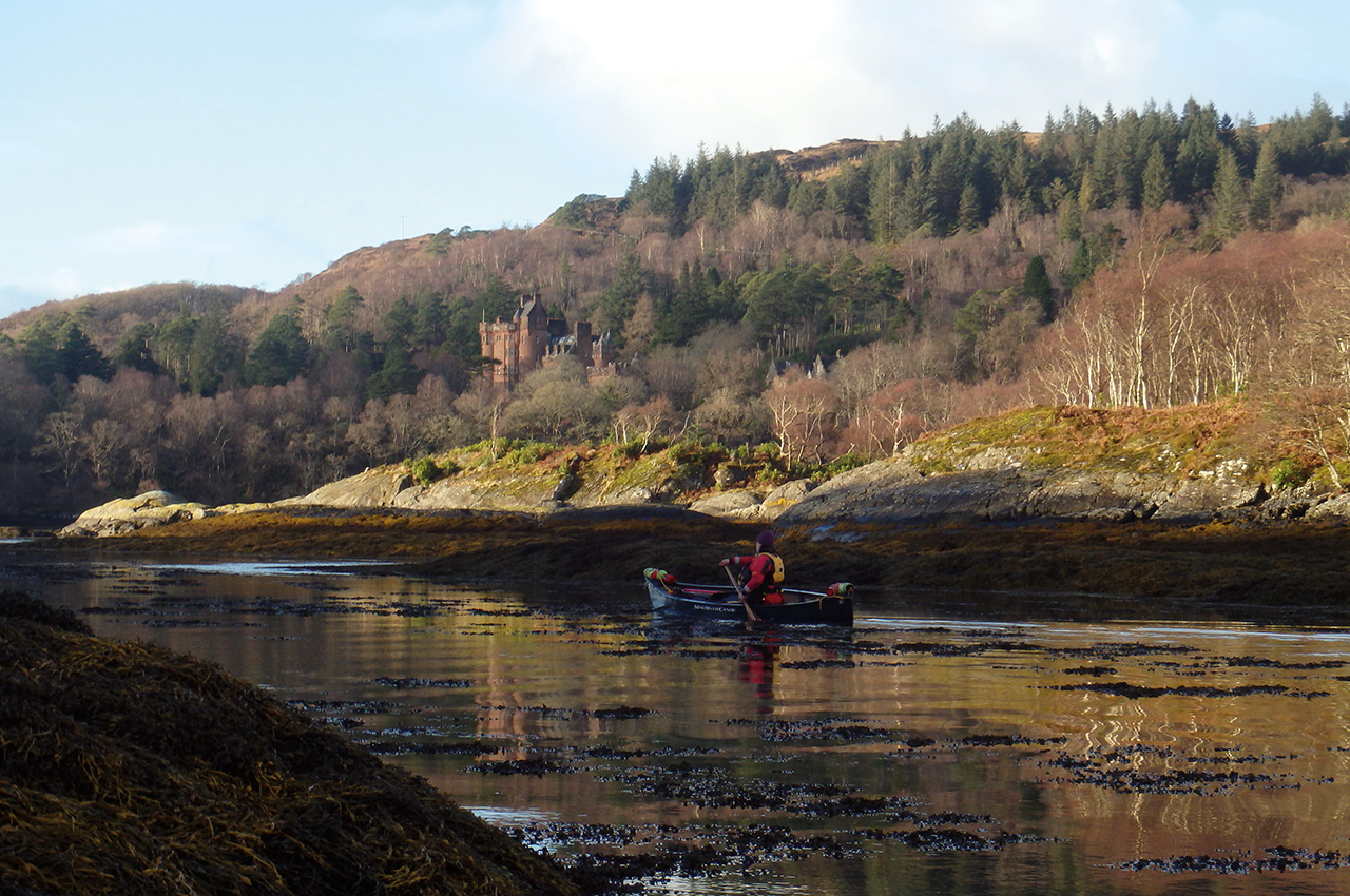 The narrows of the loch created clean sea water down to it’s bed, scoured twice daily by tidal races which had left it devoid of seaweed. The crystal clear water let in so much light that we were able to see several metres down through the liquid glass. We could spy sea urchins and slowly moving starfish from our canoes above.