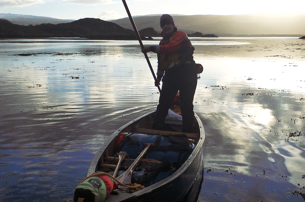Afloat on the salt water shallows, standing tall with our big sticks and poling along the loch edge, we gained a far greater panoramic vista than from the usual fixed position of our kneeling thwarts.