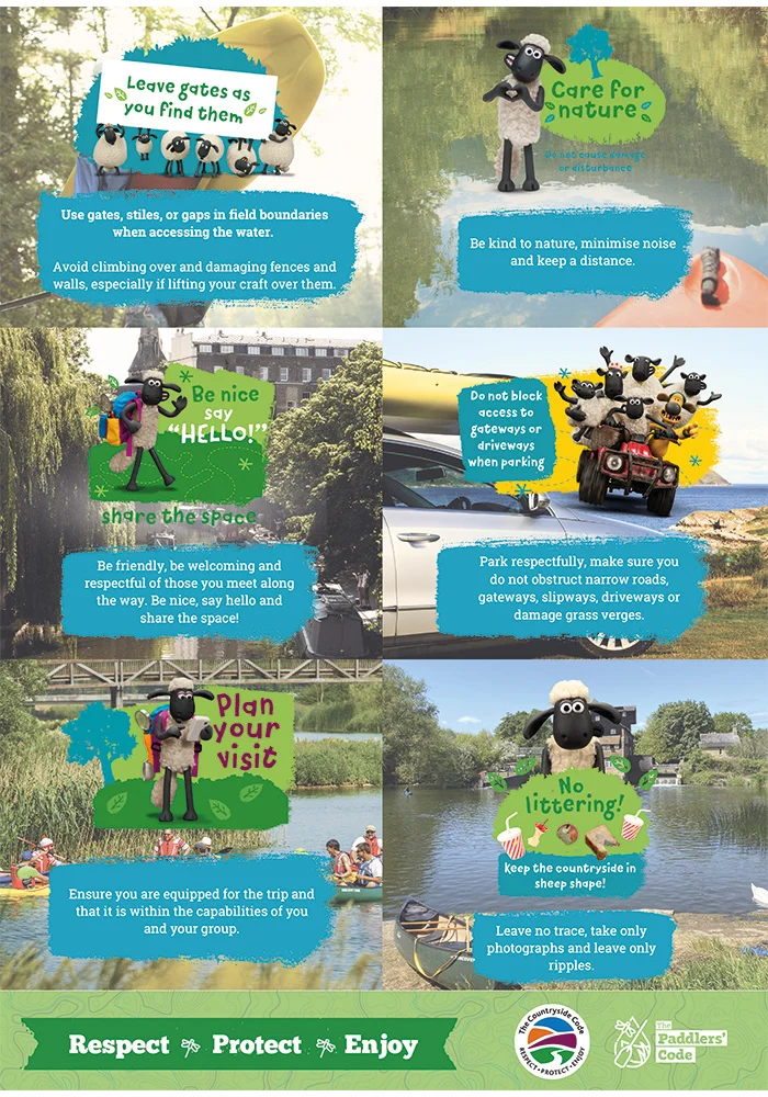Shaun the Sheep is a champion for the Countryside Code and is now helping Paddle UK to promote our Paddlers’ Code this spring.