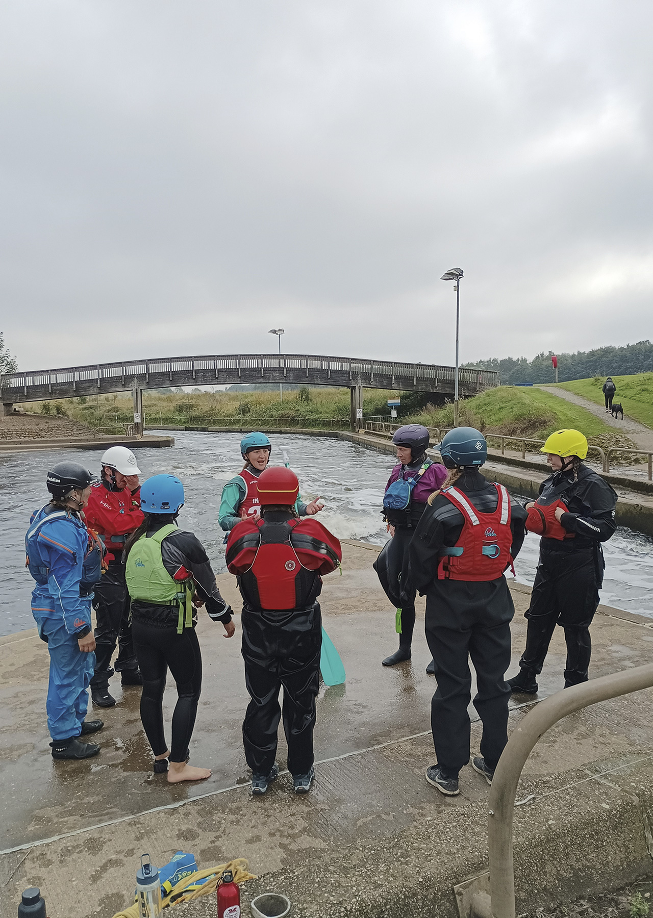 The women set up competitions on flat and white water – exploring different competition formats and having a go at the different roles required to run an event. The participants also spent one day completing their stadium safety rescue training with Beth Kirby. For some, this included new experiences swimming and gaining confidence in the white water environment. This was an opportunity to brush up on some essential rescue and throw-lining skills for others.