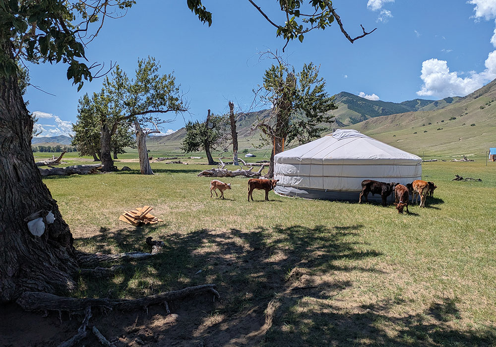 The day was short; we had gained enough distance that we could have a short river day. We paddled into civilisation, where we found more huts, yurts, and gravel/mud roads. Our plan that night was to stay at Five Rivers Camp, a ger (yurt) site. The land was once a farm, but is now run by the family as a site for cross-country cyclists, bike tours and sometimes canoe groups coming the opposite direction from us on the Delgermörön.