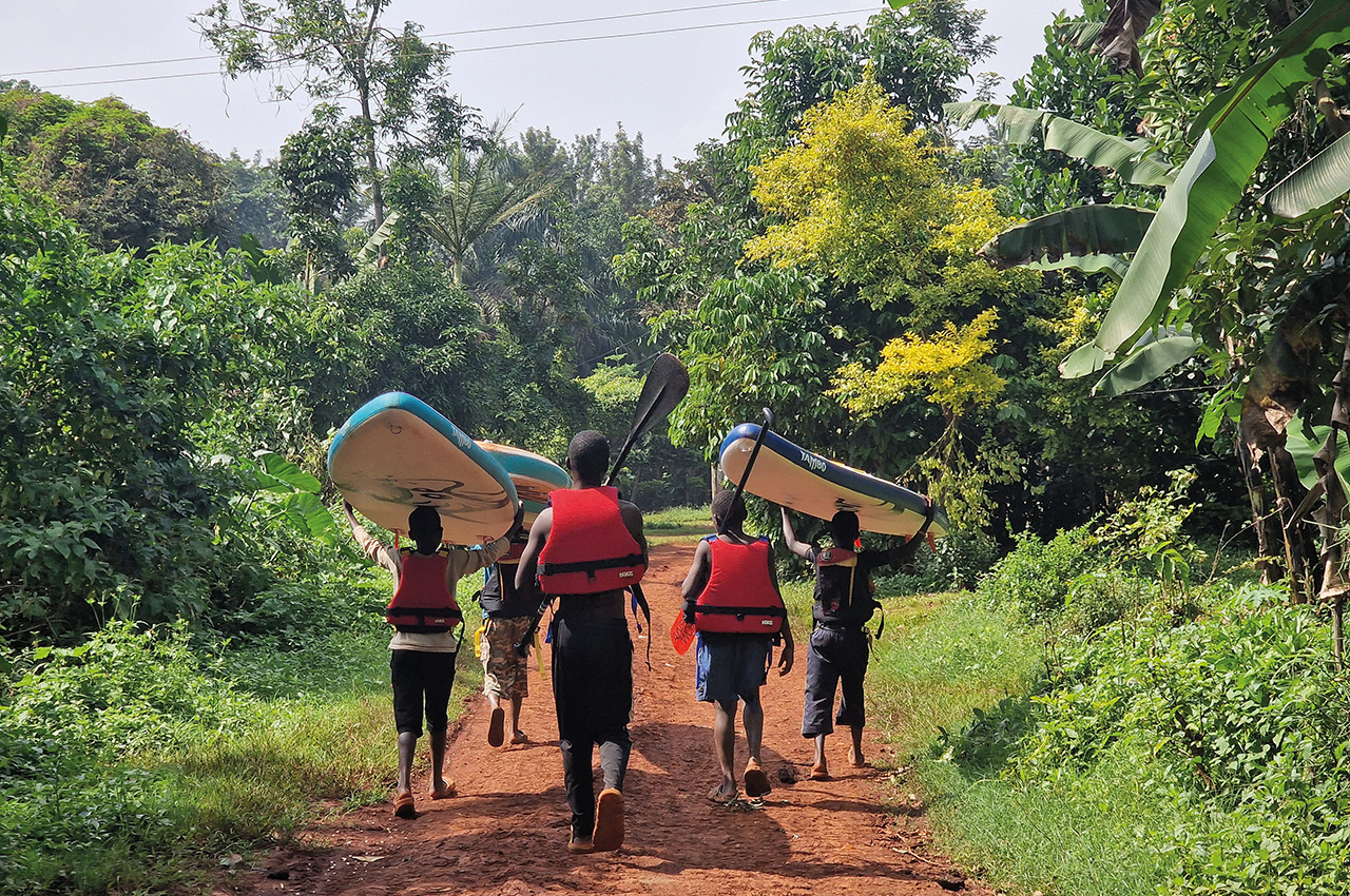 I was unprepared for how powerful this rapid was without scouting or seeing any white while here. I leisurely paddled into the rapid and immediately fell off my board at the end of the ramp, where I met the V-shaped curler. I swam the entire rapid, lost my GoPro from my helmet, and watched the Bubugo Banana Kayak School kids laugh as I coughed and sputtered out water. Little did they know, they would be gifted that board after the festival.