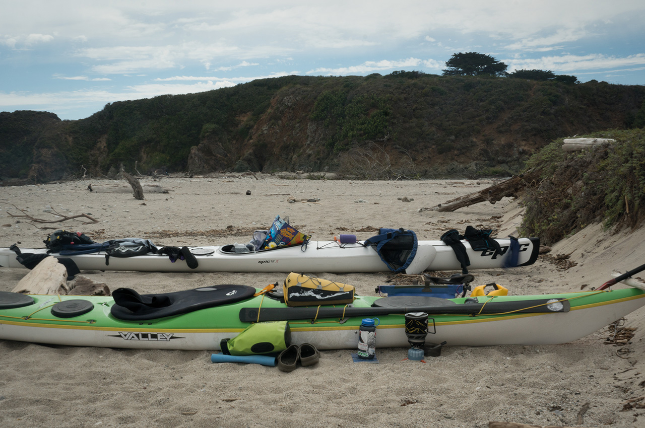 We were on the water by 08.00 Saturday morning with a cool NW breeze feathering across our skin. Blue skies, wisps of fog and stoke for our quick Big Sur tour filled the conversation as we packed our sea kayaks with food, dry clothes, sleeping bags and safety gear.