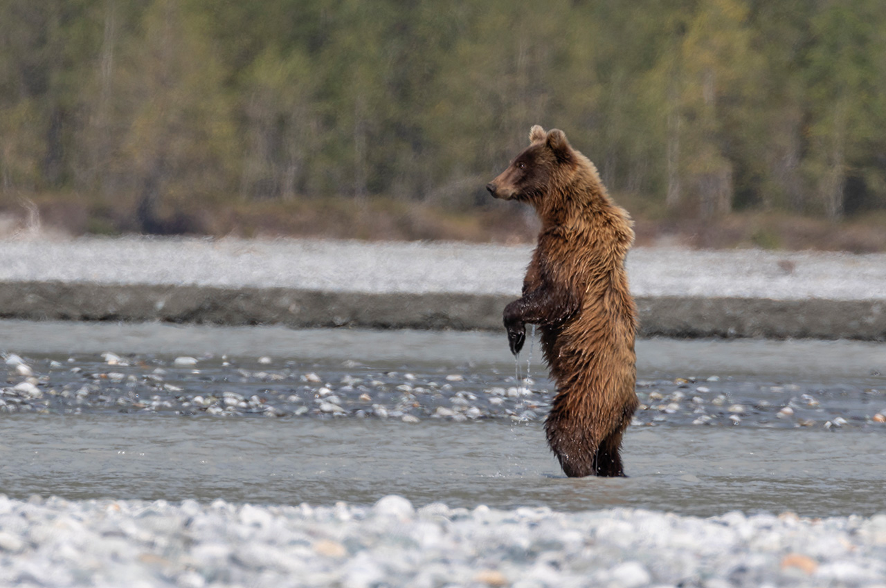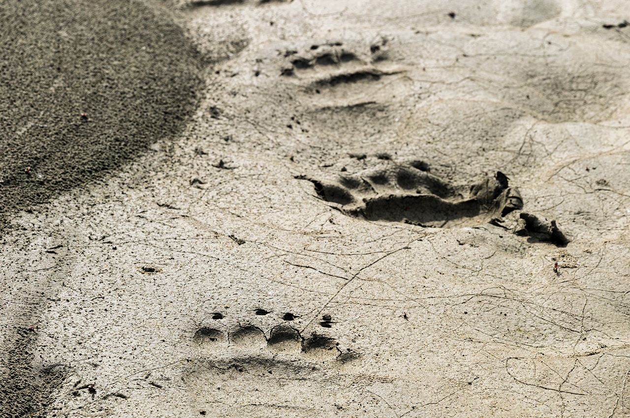 There are relatively few camp spots on the Tat with a freshwater stream, so we camped anyway. After a layover day with the excitement of spotting a lynx and a bear, we paddled through a smooth water canyon with resident bald eagles and grizzly bear tracks. Very different from black bear tracks which have a curved front footpad and toe alignment, those of the grizzly are larger, and the toes are in a straight line above a squarish pad.