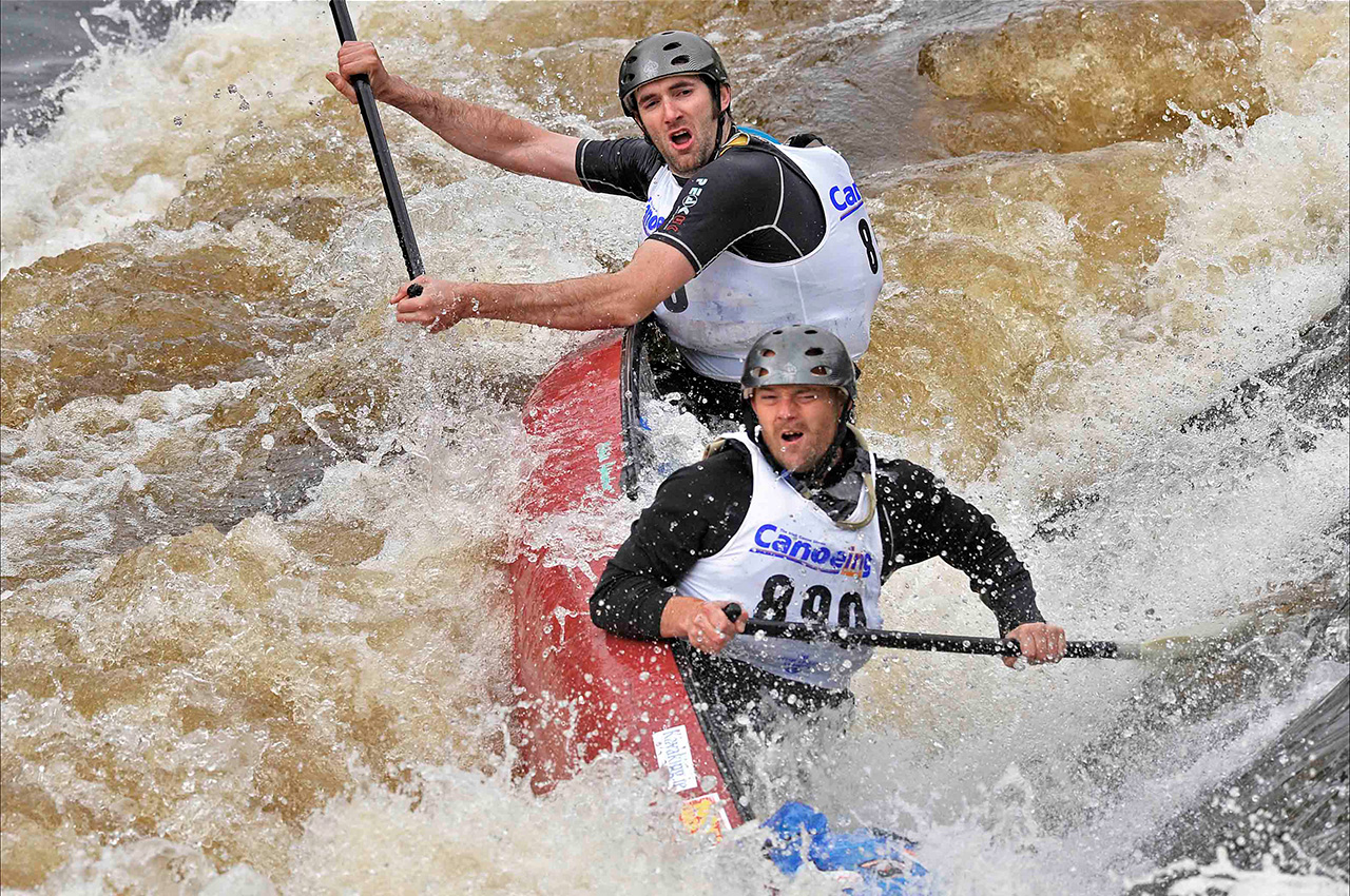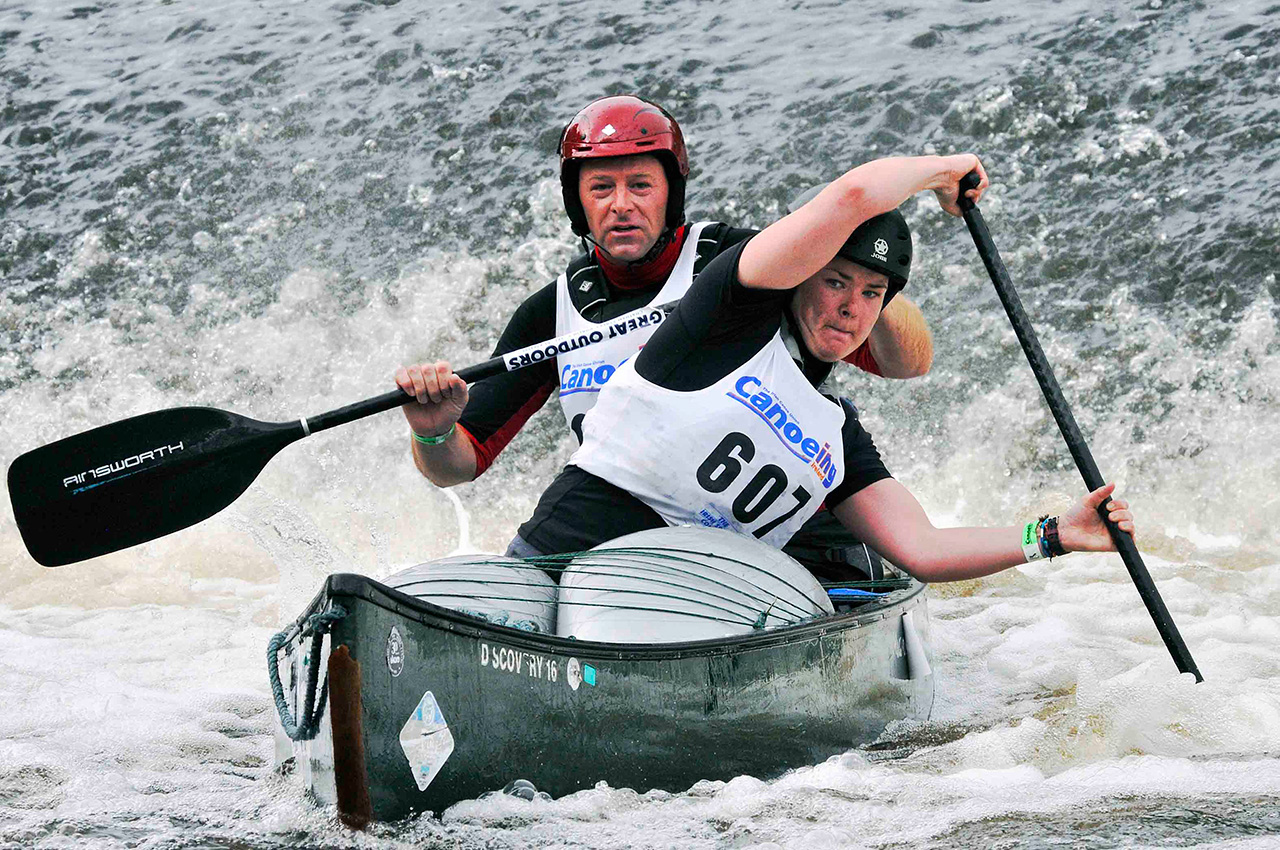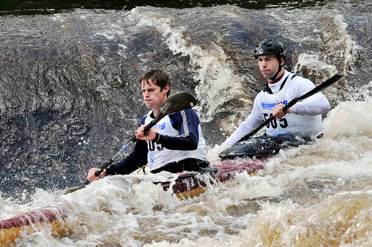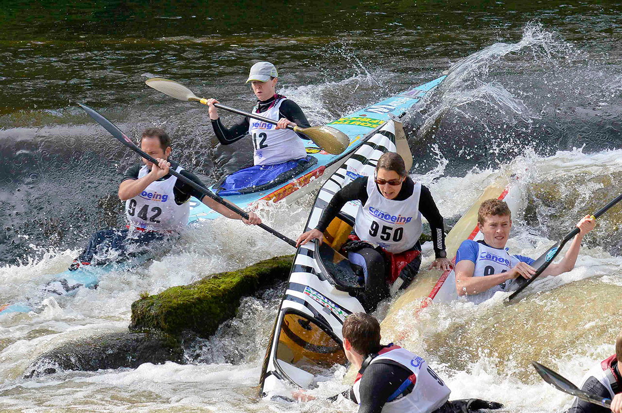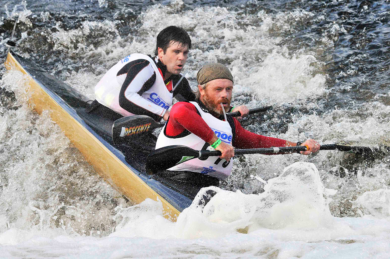 Top paddlers tend to stay close together keeping an eye on each other and watching for possible mistakes or other opportunities presented by the opposition. Weirs and the portage provide natural points to attempt to make a winning move but if the boats remain close together until the finish, it becomes a game of cat and mouse. Is it more advantageous to be in front or to sit slightly behind on the wash and doing less work? Either way, the moment to strike for the line is vital, timing the effort is everything and you only have to hit the front at the line to win.