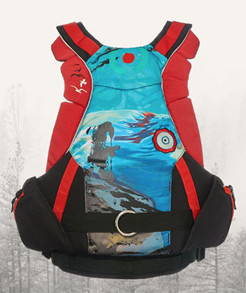 The Indus is the world’s first limited edition high float rescue vest, and this limited edition version is designed in collaboration with whitewater kayaking legend, Benny Marr, and Nature-inspired artist Anna Kai. This High Flowt™ rescue vest includes all the same safety and performance features as the Indus™ life jacket, along with original multi-medium artwork inspired by the learnings and teachings of Benny and Anna’s freeride community.