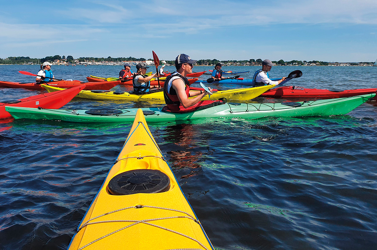 The second part of the day changed pace as we headed further out to sea across to the famous Scout camp and National Trust-owned Brownsea Island. With crosswinds, this proved somewhat choppy, and even the most experienced of our paddlers heard a few whoops and squeals. There was no choice of escape at this point but to dig in and just keep paddling through it. Seeing other holiday makers just sitting on their kayaks at the edge of the island, not venturing anywhere, I felt great pride for what we had all just achieved.