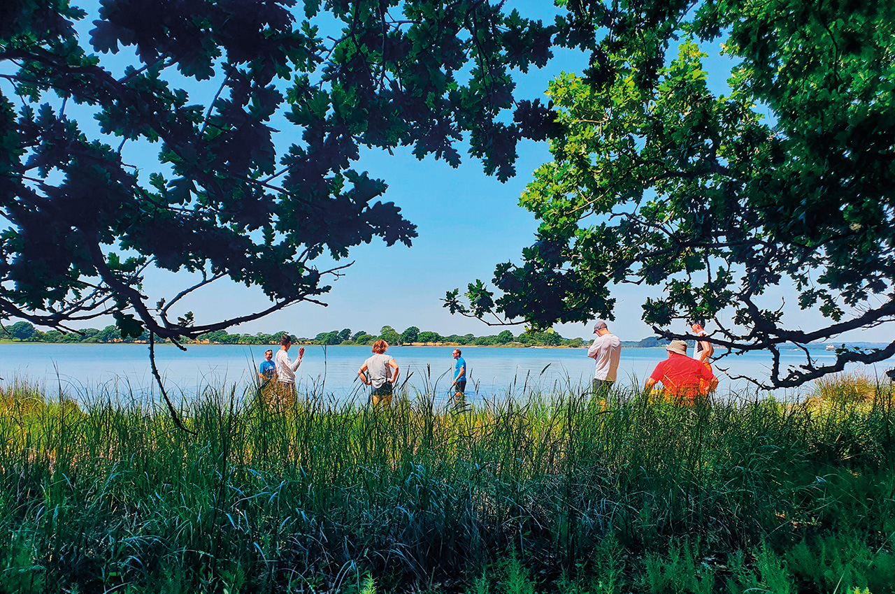 With the NCC group’s stamina being tested, they were already tired and hungry, so they opted to stop for lunch at a top-secret isolated beach rather than carrying on to Brownsea Island. Whilst one of the PHCC members gave us a history lesson on the island over lunch, others went for a paddle in the pleasantly warm sea. Some had childhood memories triggered by watching the crabs running around on the beach whilst others overcame their fears of toilettes au naturale!