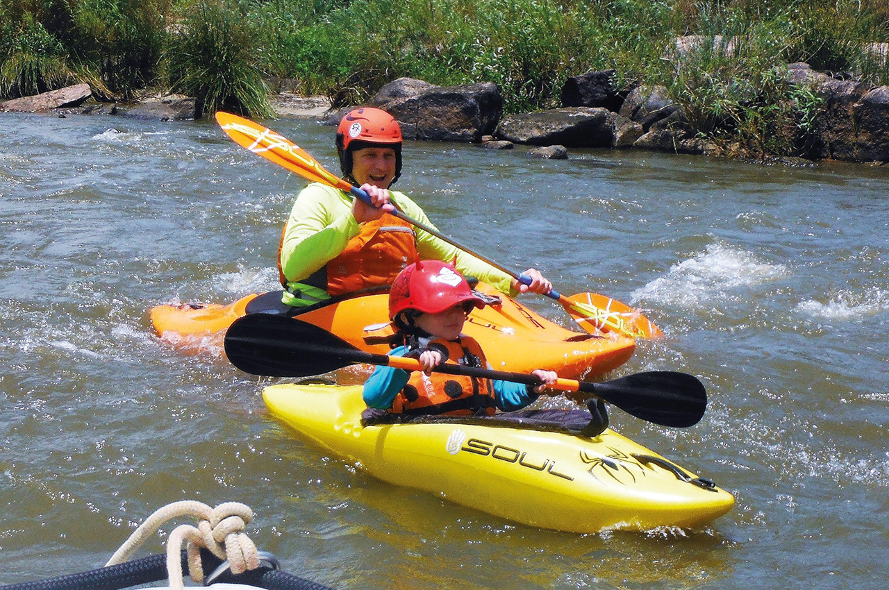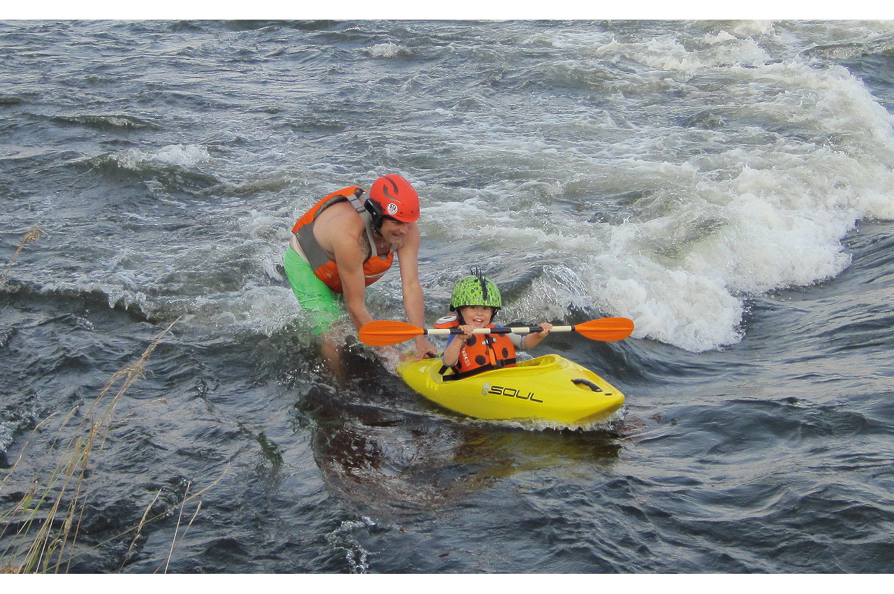 I introduced my son, Kailix, to whitewater before his second birthday. He’d sit in the cockpit with me and we paddled everything from class 1 to 3. At this age, everything is just a riot of giggles and fun, and he had little concept of consequence, nor fear. That kicked in when he turned about three, which is about the same time that he had the muscle control to begin paddling his own kayak in flat water and tiny rapids.
