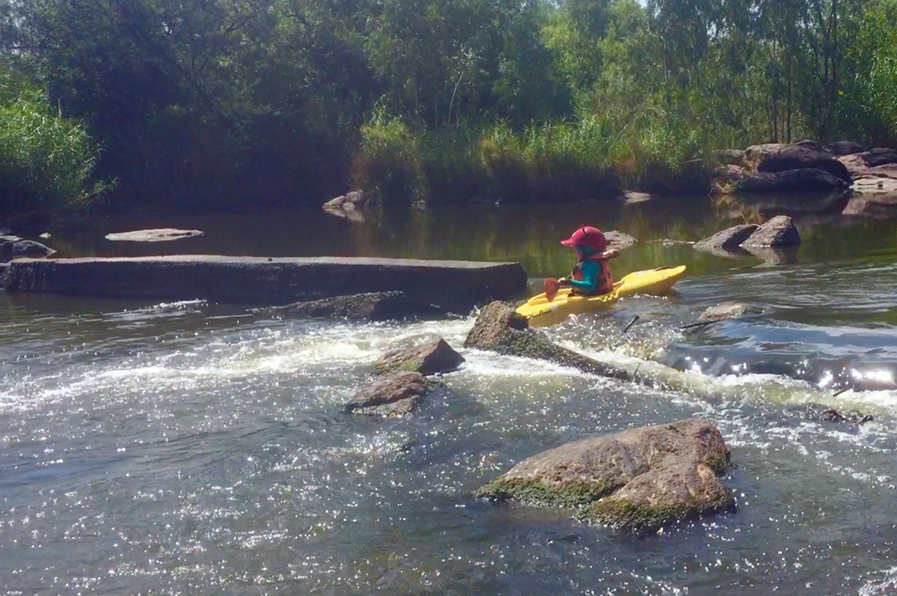 After three years of paddling his own kayak, and four years of kayaking total in his short five years of life, I have yet to give him a kayaking lesson. He doesn’t know about upstream or downstream. He figured out how to make turning strokes and paddling strokes on his own long before he had the mental understanding to absorb and process this as taught instruction. He has no concept of edging. In fact the only lessons I’ve taught him are ‘speed is your friend’ (applies equally to motorbikes, snowboards, bicycles and everything else he does), and always aim straight for the top of the biggest waves.