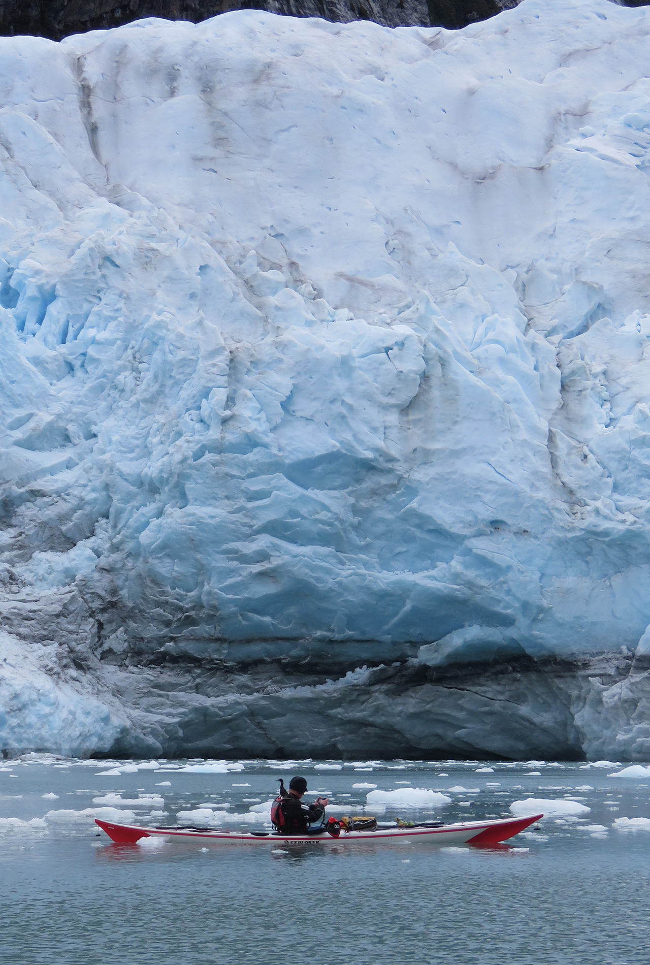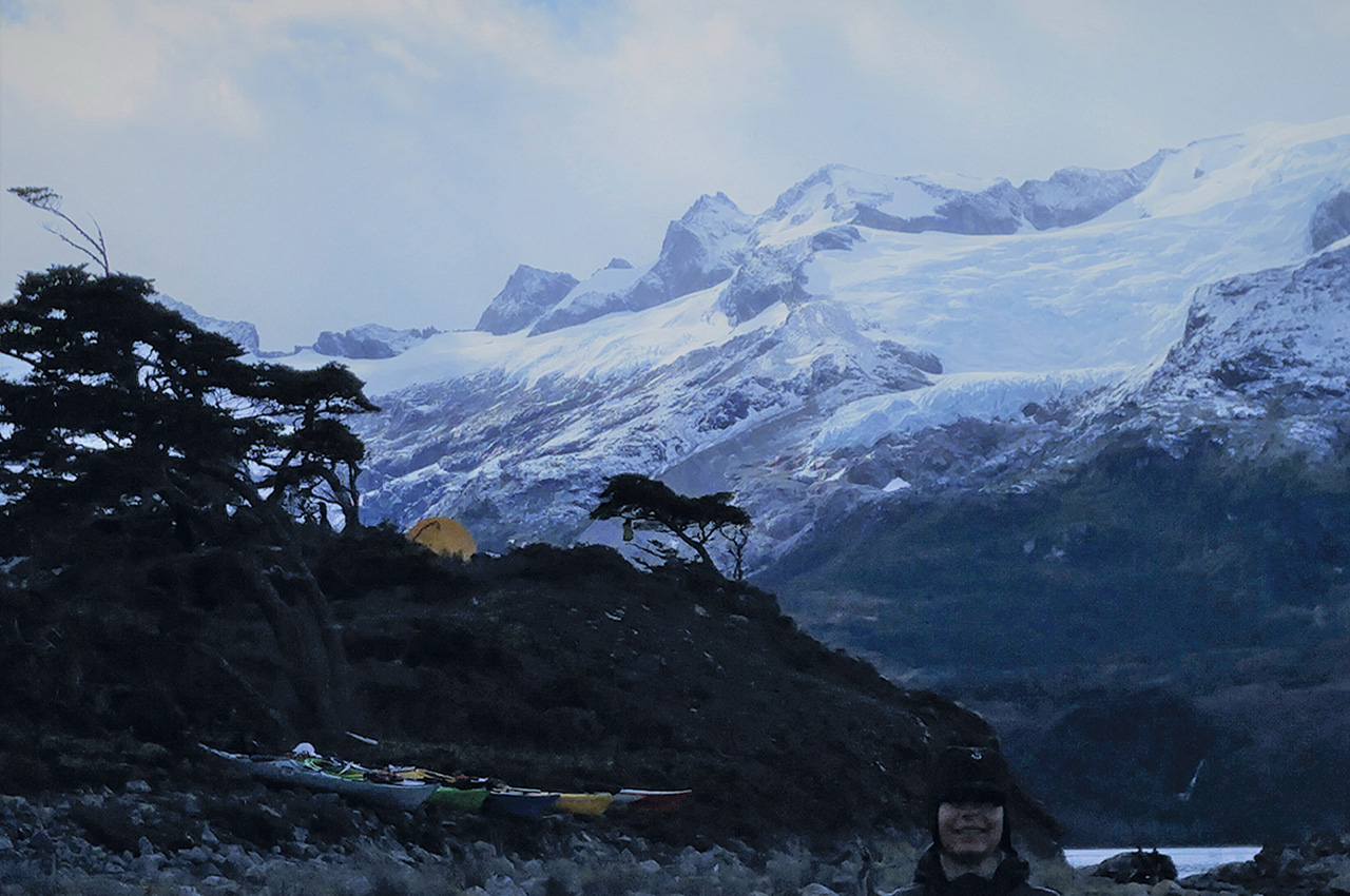 The first day on the water consisted of pushing into Force 6 headwinds heading west from Caleta Maria. I did wonder what the local lads thought about the weather, as they had been pretty quiet during the eight-hour head wind push to the intersection of another fjord heading south into the Perry Ice fields, where the environment became even wilder. Our assistant Chilean coach, JP, quietly reminded us that South America has a very machismo society and if Paula was working in those winds with no problem, then they certainly would not voice any complaints.