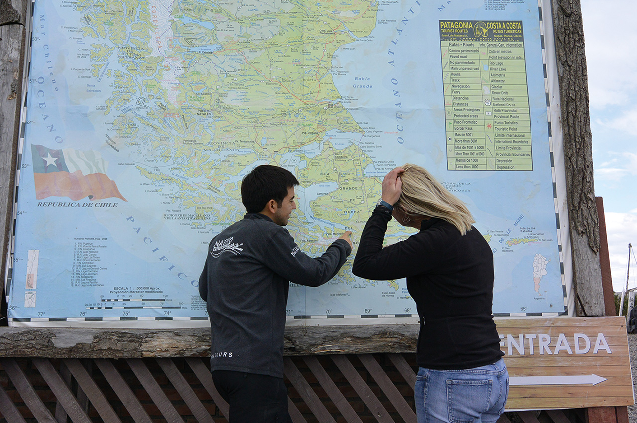Upon arriving and before enjoying a rest evening with our coach friend and expedition company partner, Juan Paulo Ceron (JP) of Universal Kayak, we airfreighted our three-piece kayaks to Punta Arenas in southern Chile to arrive just ahead of us the following day. After a four-hour morning flight the next day, we arrived in Punta Arenas greeted by a young lad saying, “Welcome Greg and Paula, I am Camilo from Nativo Expediciones.” Nativo is the young expedition company seeking guide training experiences and coaching from Kayak Waveology and Universal Kayak companies.