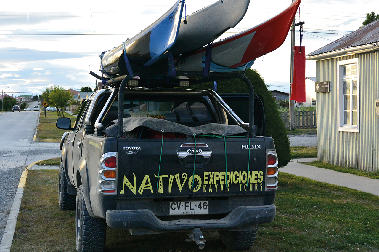 From there we collected our three-piece NDK Explorer sea kayaks from the air freight side of the terminal without a hitch – then the driving adventure began. It started with a two-hour drive to the Magellan Straits ferry crossing and crossing in a small, open top ferry. Force 5 winds and opposing tides made for an interesting sea spray-filled ride. After another two hours of driving on dirt roads, we met up with Nativo’s other partner, Fredy.