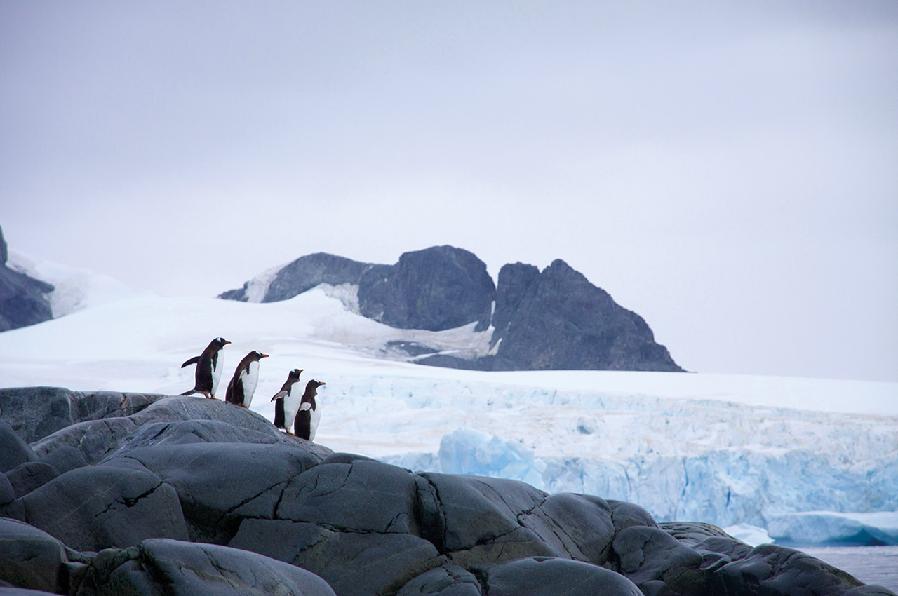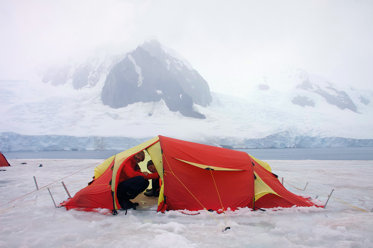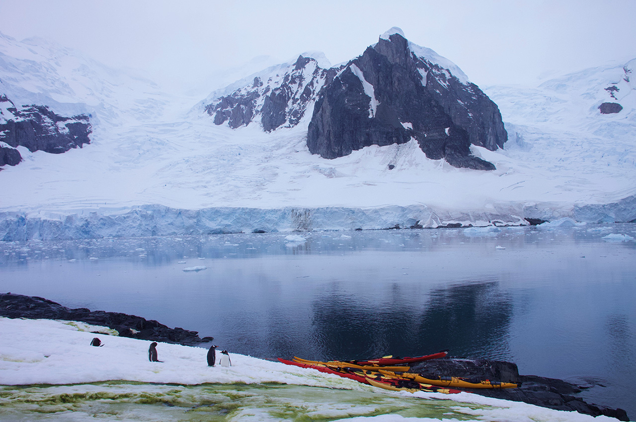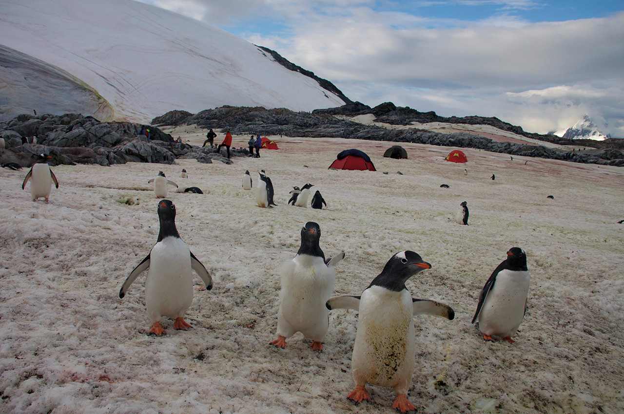 A pair of penguins had clambered up onto the boats, presumably to keep their feet off the freezing ground, and observed curiously as I struggled out of my down jacket and splashed some icy water over my head and torso in an attempt to get clean. Feeling suitably invigorated, I started back to the campsite – which is where I started this article, slipping and sliding my way up to the tent…