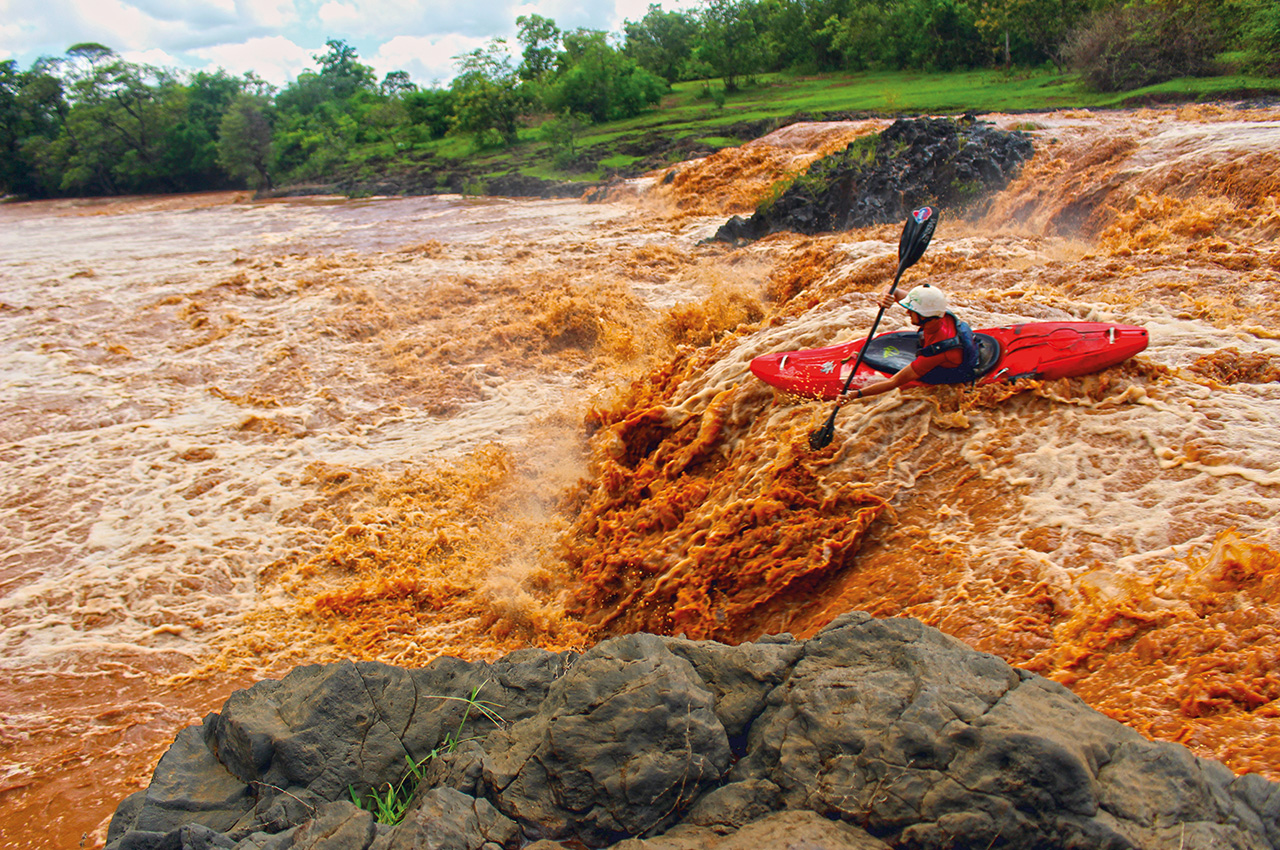 Then it rained! The surrounding areas turned from to a dry and dusty yellow colour to a bright healthy green and river levels quickly rose to bank full, which made the competition a lot more challenging. Wrong line choice or an errant boil could cost you the race on what was now a big volume, technical and brown African stout!