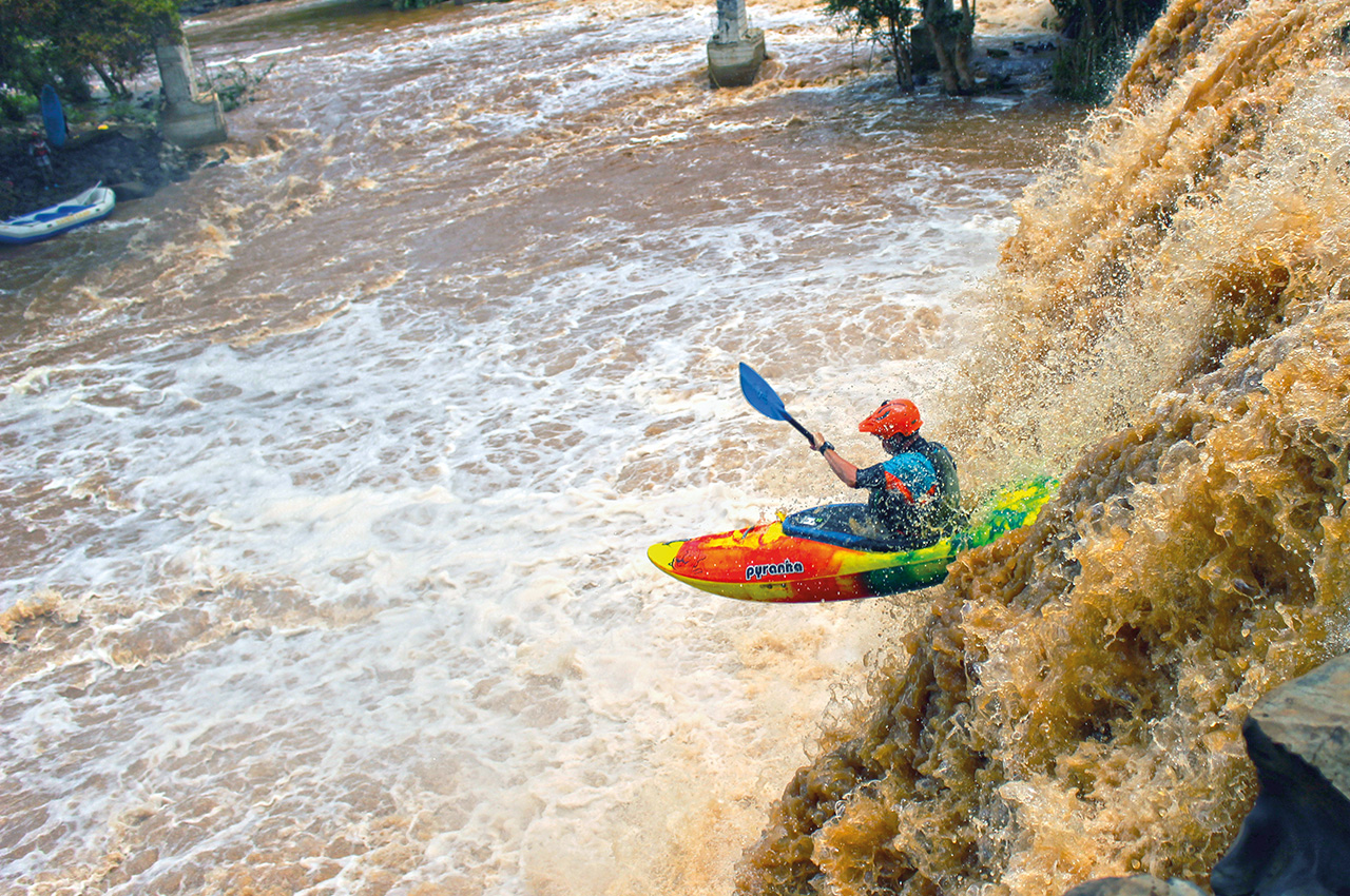 The first event this year was the endurance race which consisted an eight-kilometre paddle of the main commercially rafted section of the Tana River with ‘any line goes’ rules. One of the choices is the classic eight-metre waterfall known as ‘The Mission’ (luckily no one landed on top each other… on that drop)!