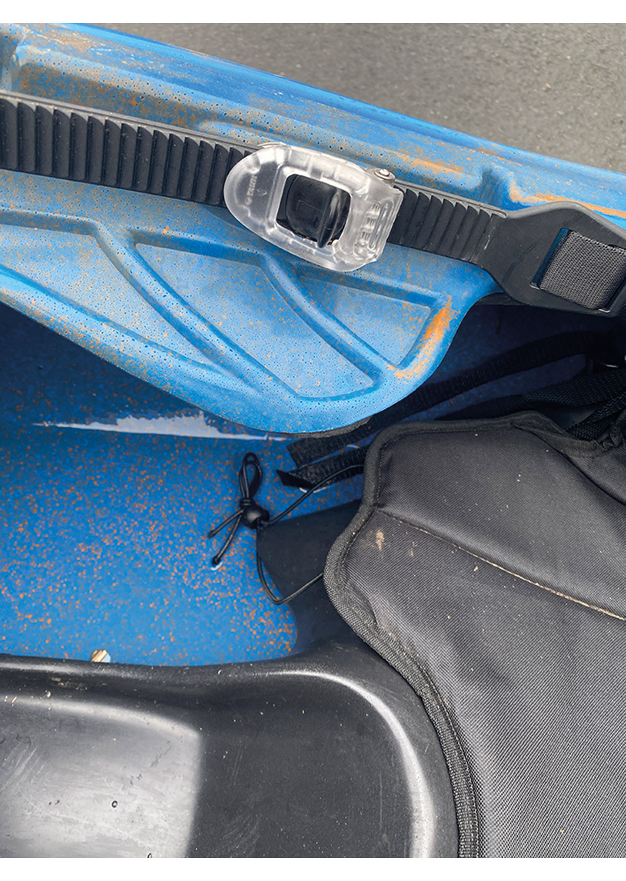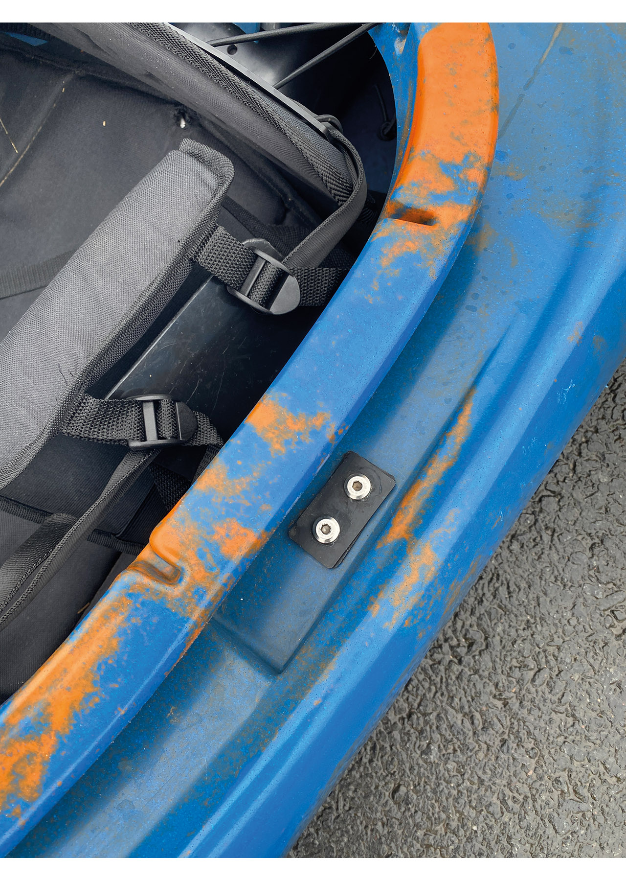 The hip pads are secured to plastic plates that are riveted to each of the seats posts. This boat needed one of the plates swapped out due to the rivets being pulled out. I suspect this may have occurred when one of the previous paddlers had pushed down on the system too much as they entered the boat. A message to Titan saw a replacement along with an option to use rivets or bolts arriving at Unsponsored HQ within a couple days. Over the few weeks I have had the boat, I haven’t had an issue getting in and out that has resulted in further damage.