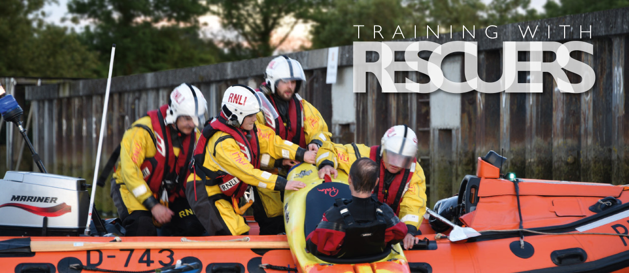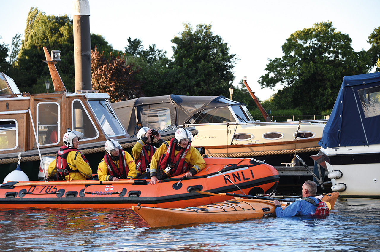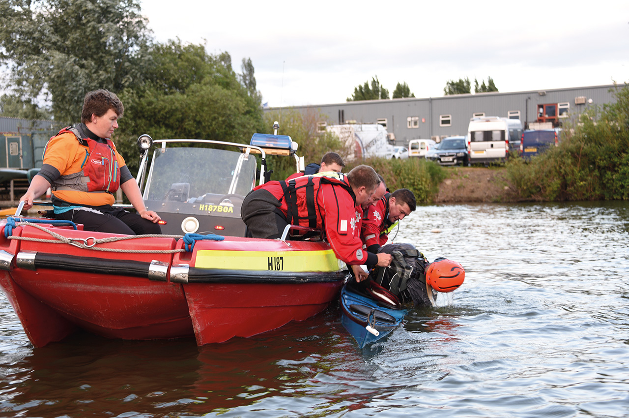 So on a Monday evening in June, eight experienced paddlers trained with Surrey Fire and Rescue Service in and on the calm waters of Shepperton Marina (access had kindly been arranged by WhiteWater The Canoe Centre, which is based there). Two days later, the same team trained with the Teddington crew of the RNLI in and on the Thames near Teddington Lock.