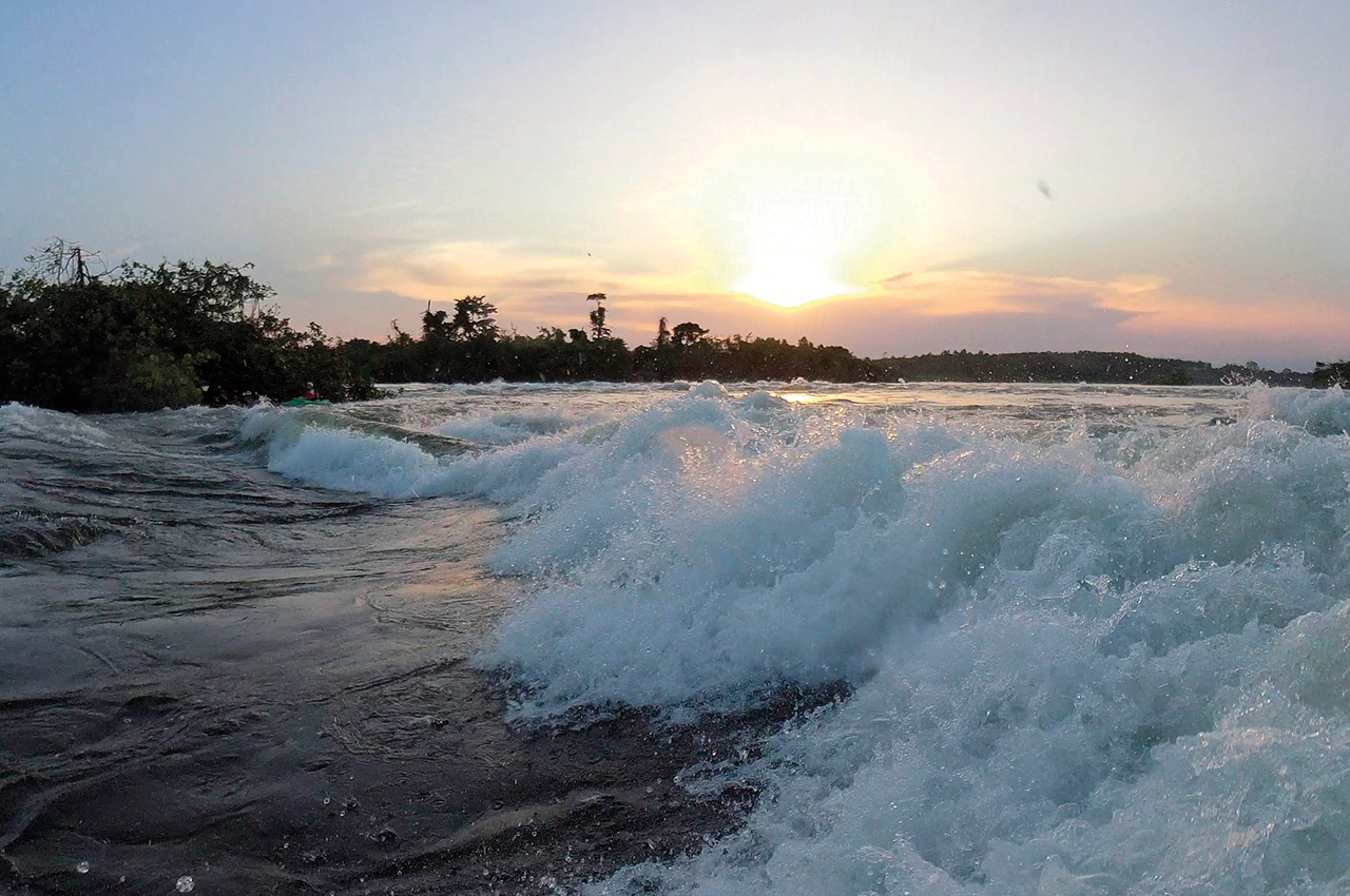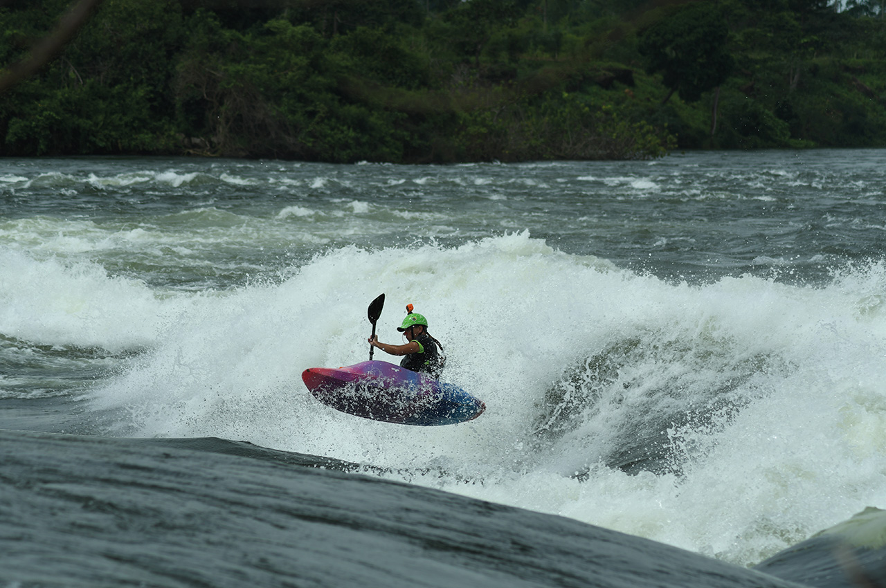 AAA – is the sound that you make when you catch this wave for the first time. It has a narrow window with too high water being too green and too low, getting very powerful and aggressive. However, getting it just right is worth every day hunting for that perfect spot and is a real cherry on the cake to finish up a Ugandan trip. It is the biggest wave I have surfed! Surfing is like being on a constant roller-coaster kicking you up and down, and if you can only commit to the trick, then you can get huge aerial moves. If you want to come back to it, you catch the eddy, hop out and with a short walk on the island, you are back at the top to drop in for another ride!