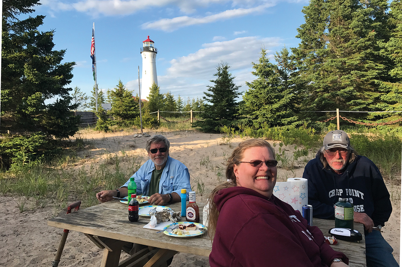 This is your primary destination. Enjoy the beach, tour the beautiful lighthouse, visit the gift shop and nautical museum, or just use a real bathroom. Please bring a few dollars and purchase something at the gift shop, as this money is what keeps the lighthouse open.The lighthouse itself is phenomenal. Of all the lighthouses that I explored around the Great Lakes, Crisp Point is at the top of my list because you are allowed to go to the very top and stand outside on the restored railing. The view is spectacular. Camping is not allowed here, but kayakers can remote camp further down on the sandy beach. The sunsets are magnificent and night time brings the darkest, most star-filled skies you can imagine.