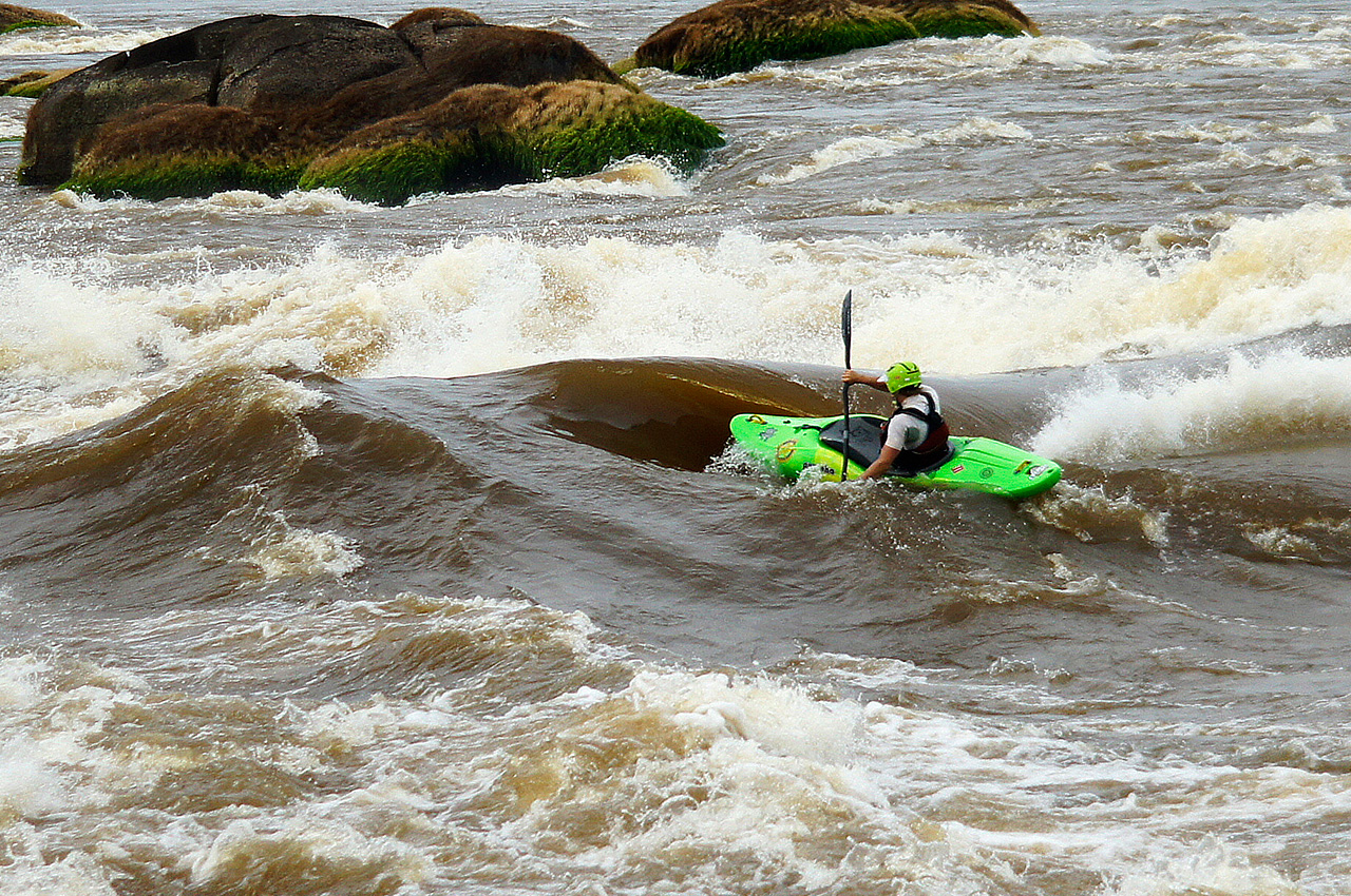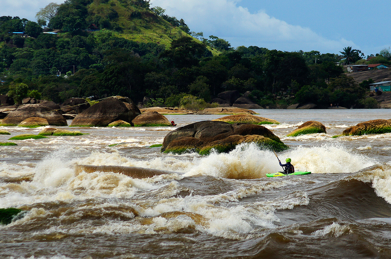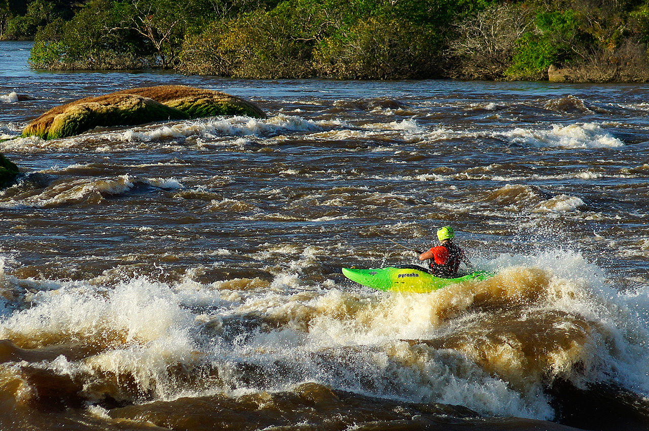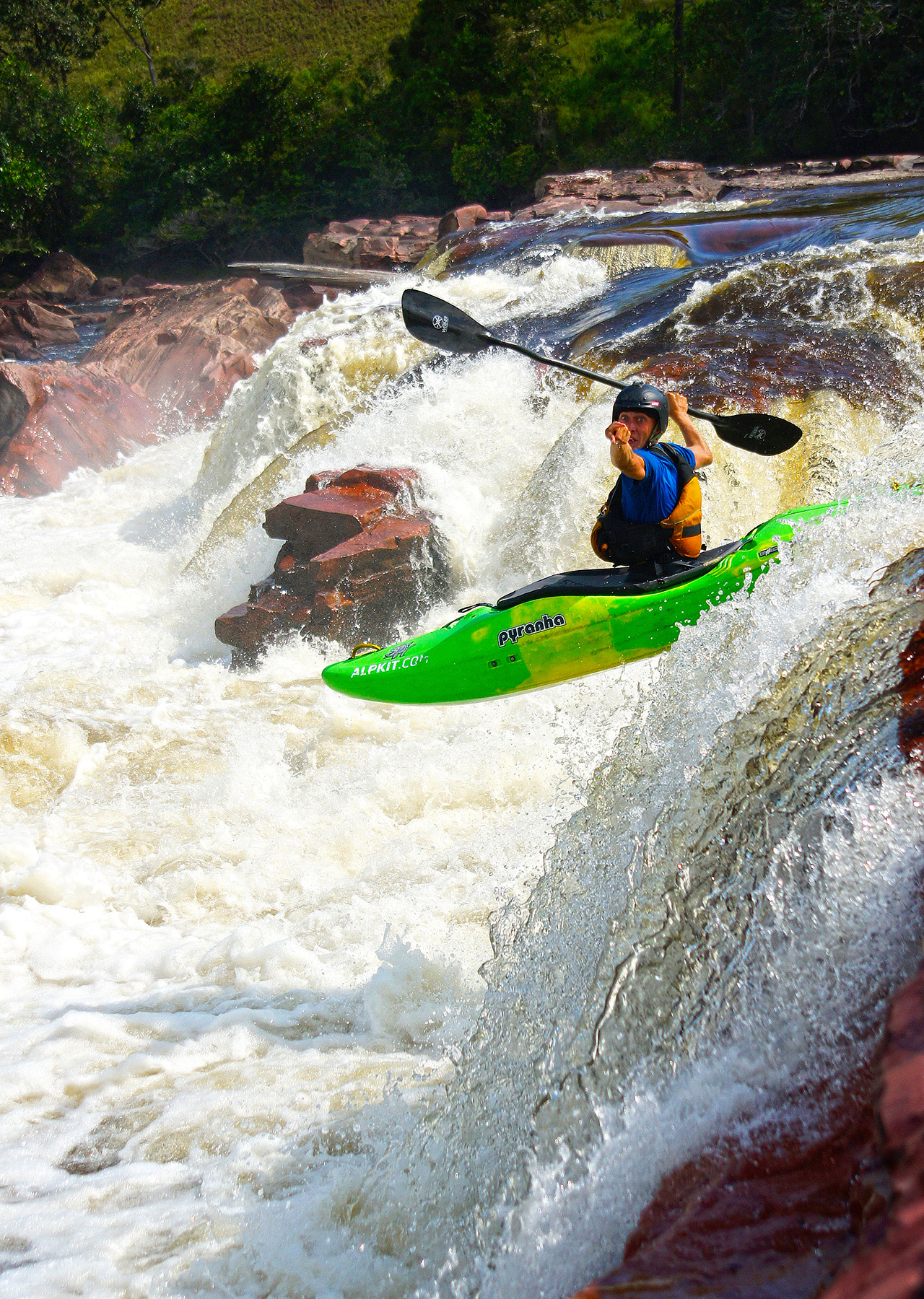 Following on from our month in the Andean states of Barinas and Merida, we headed to the Orinoco for a week playing on the big volume (30,000 cumecs!) rapids and waves where we nearly commandeered an old Soviet era military helicopter for filming purposes. From here we drove east to the Gran Sabana in search of waterfalls and finally to the beach to enjoy the Pacific surf for the last few days before most of the team flew home. In all we spent two months in Venezuela, a country beset with political problems and security issues. All that we experienced was the generosity of the many Venezuelans who welcomed us into their homes, the magnificent beauty of the country and the fabulous variety and quality of white water kayaking to be found there.