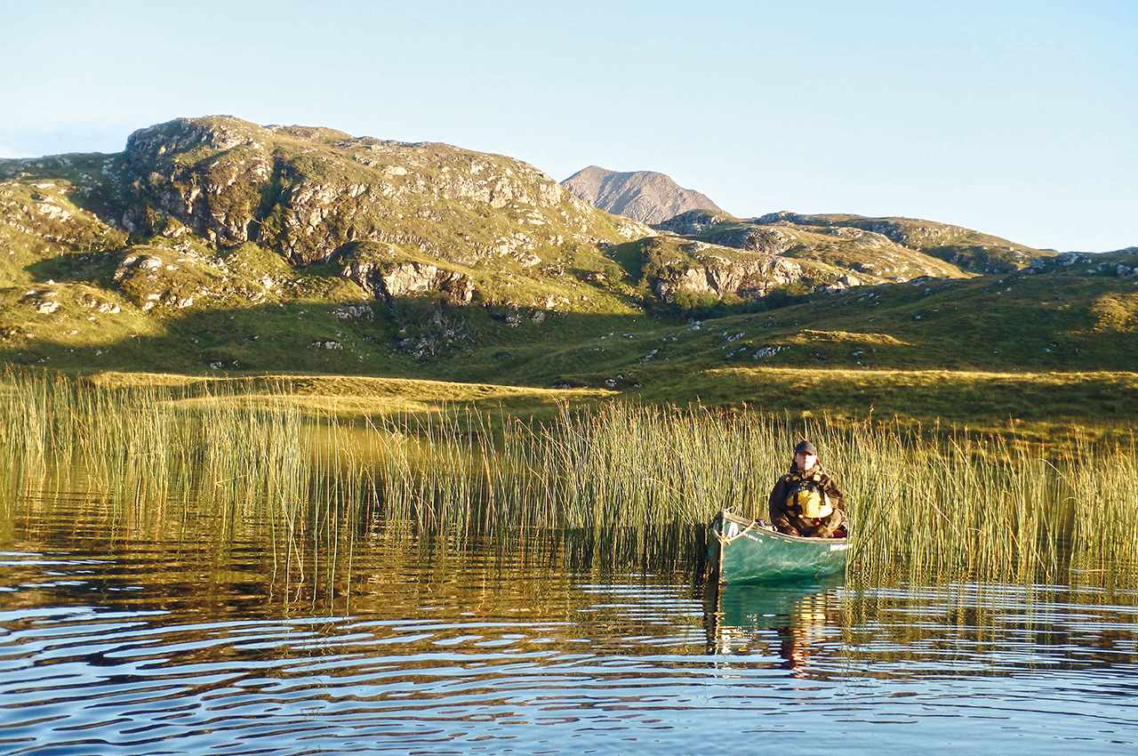 After skilfully poling through The Narrows, we moved further onto the loch and so were afforded some shelter from the increasingly gusty conditions. Headwinds of F4-F5 gave Adam the perfect opportunity to see how well his new Hou Prospector would perform on its maiden voyage. It’s always interesting to learn about a new boat and its character, especially with Prospectors having a reputation for being difficult to control in windy conditions. A little bit of trim and a slight edge combined with deep strokes soon translated into a look of glee on Adam’s face, as he quickly became at home in his new boat.
