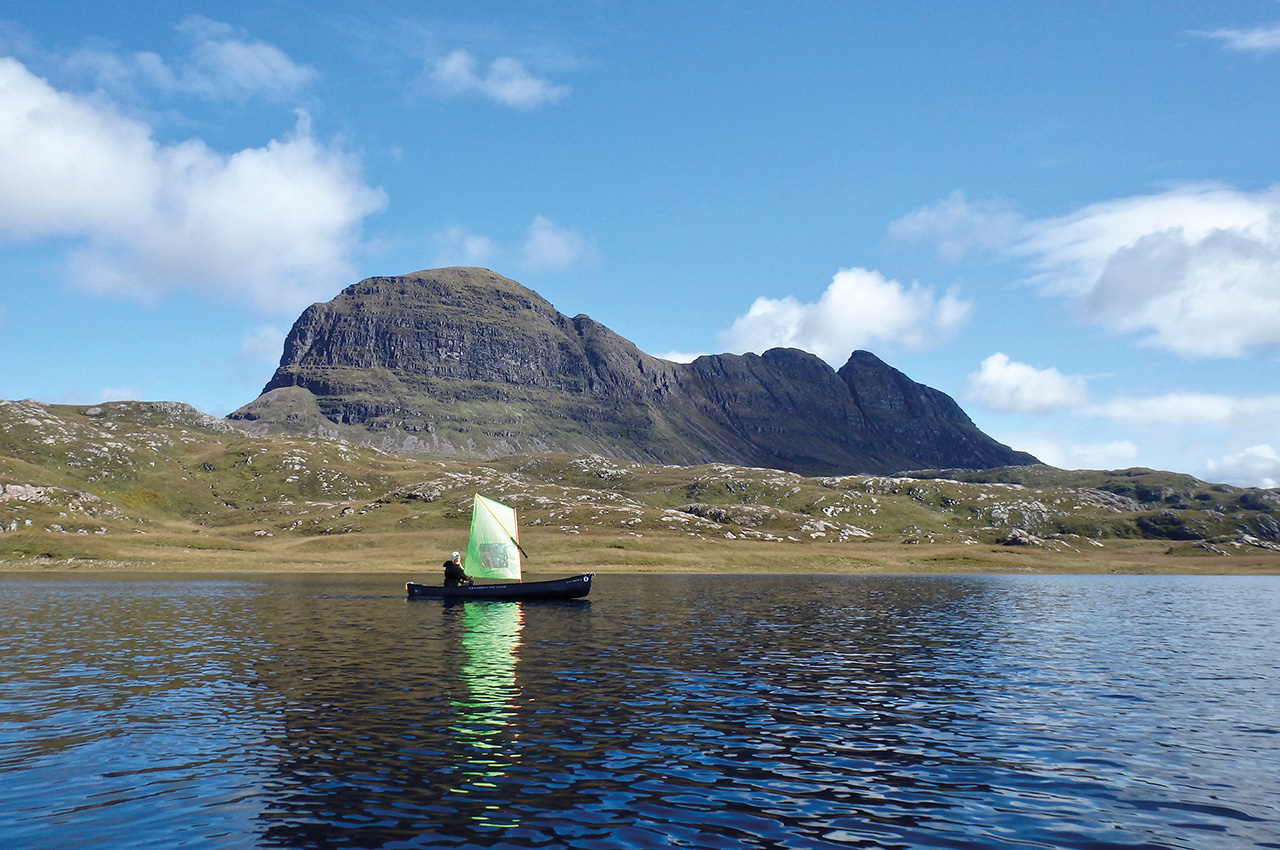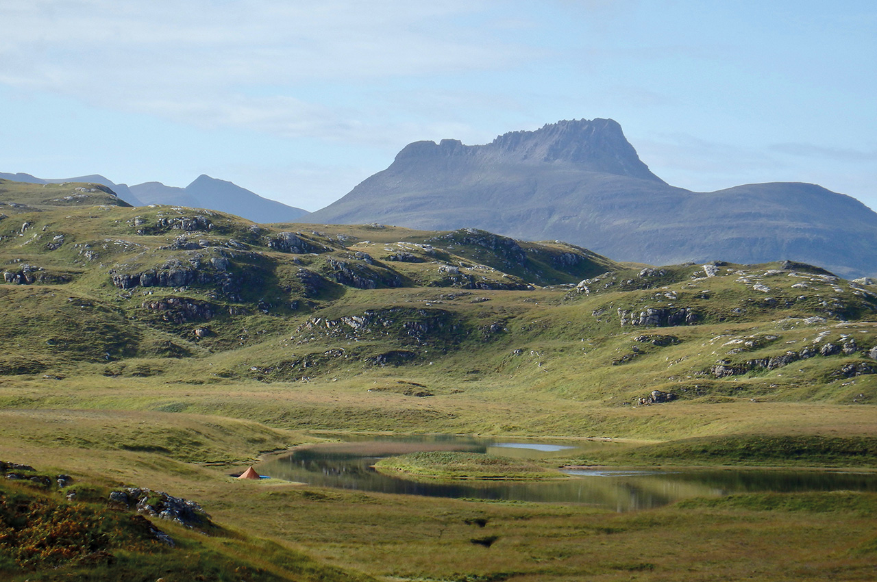 Working further down the loch to look for a more sheltered location revealed no suitable areas of flat land. We paddled back out onto the main body of the loch and located a perfect elevated spot within sight of The Narrows and with Suilven beckoning in the distance.