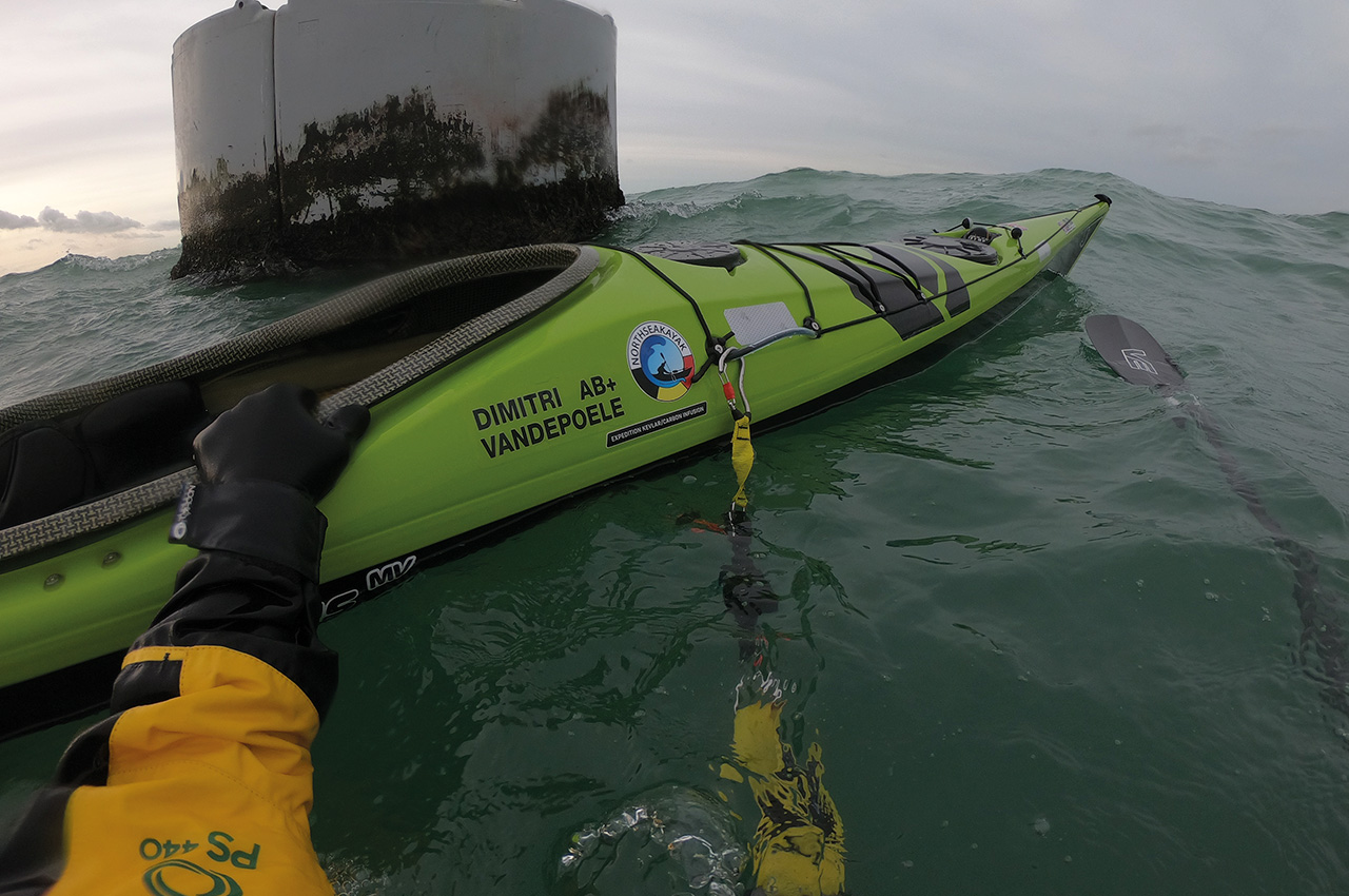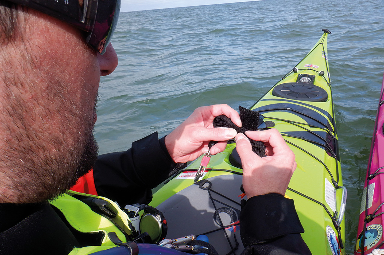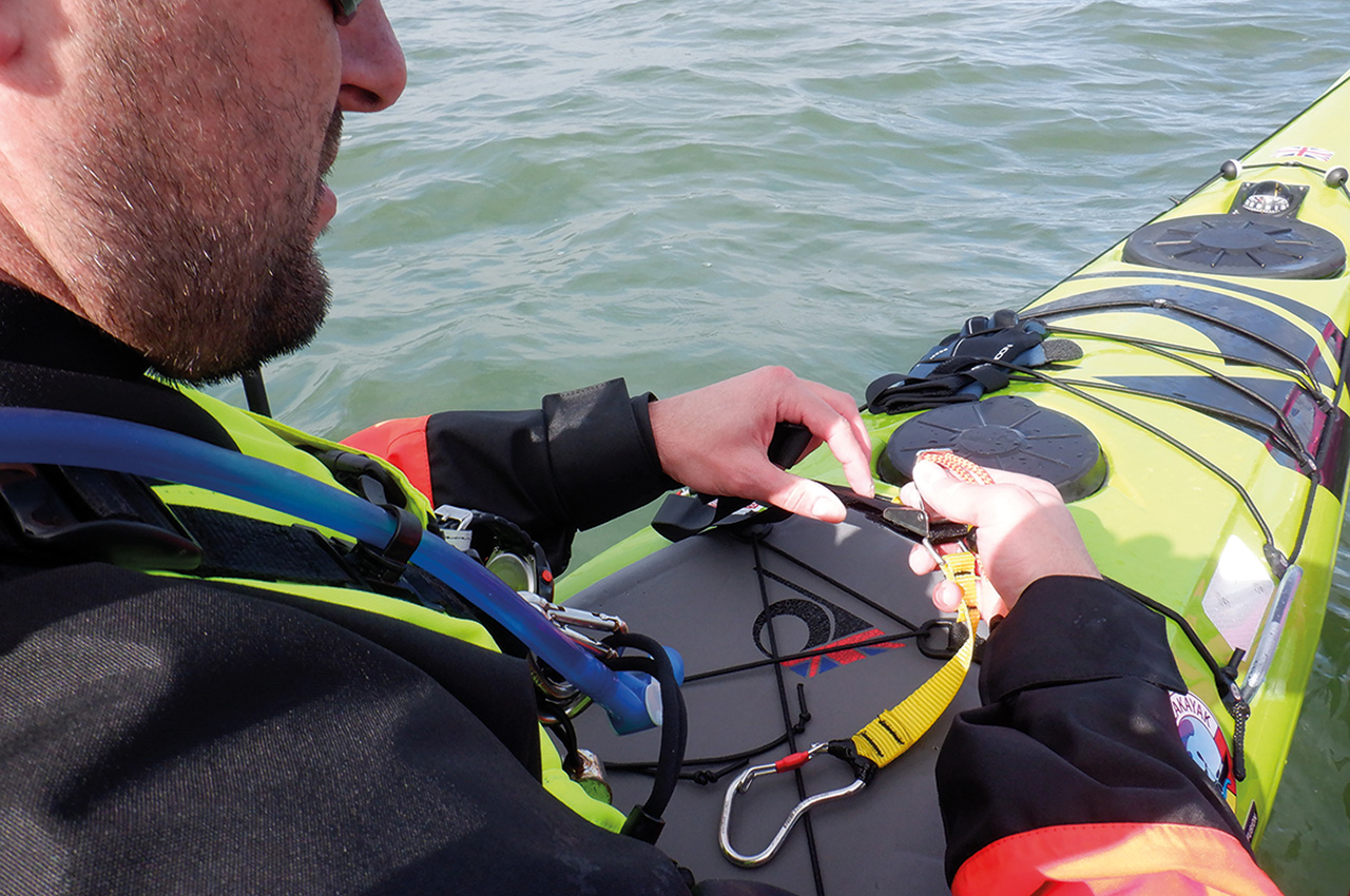 The Velcro that holds the folded webbing release swiftly under tension, but it holds on to the extra webbing when not in use. The only thing that needs a bit of training is refitting the extra webbing after use, so there is no extra webbing rolling around on your front deck. When doing this a few times, it’s even possible to refit the setup in rough conditions (of course, not in the surf zone).