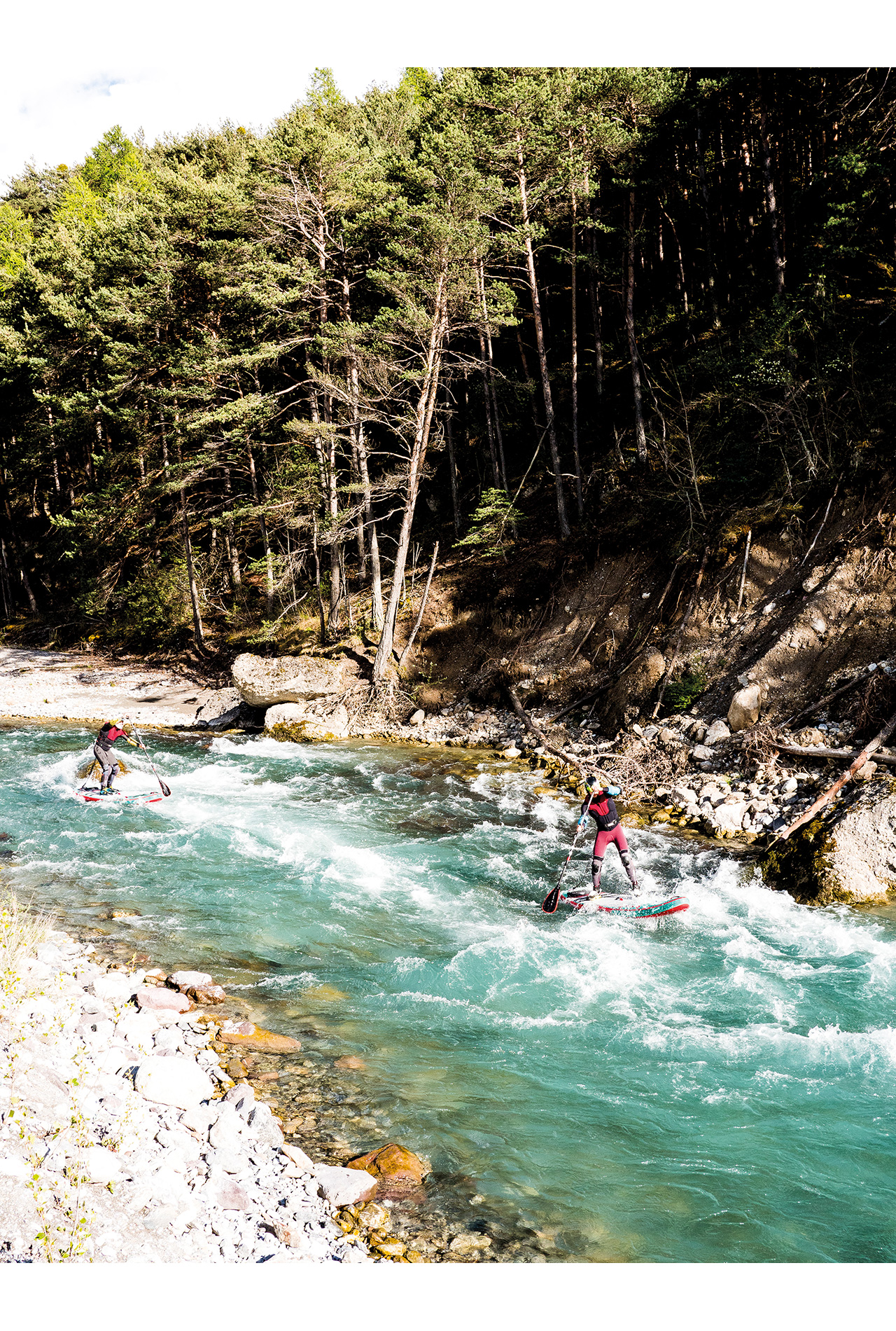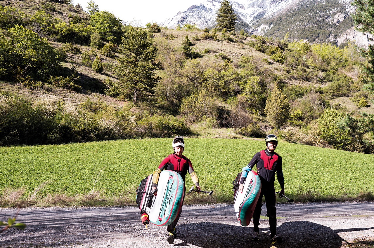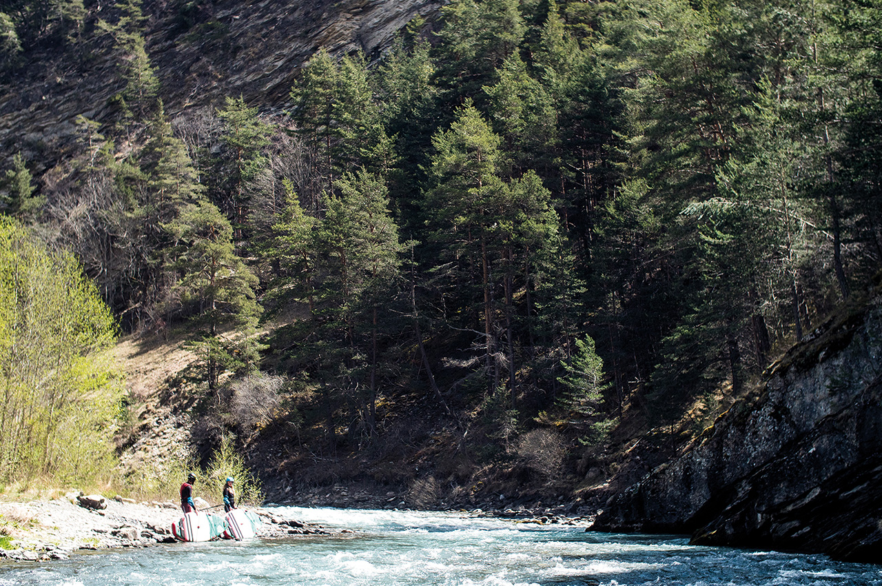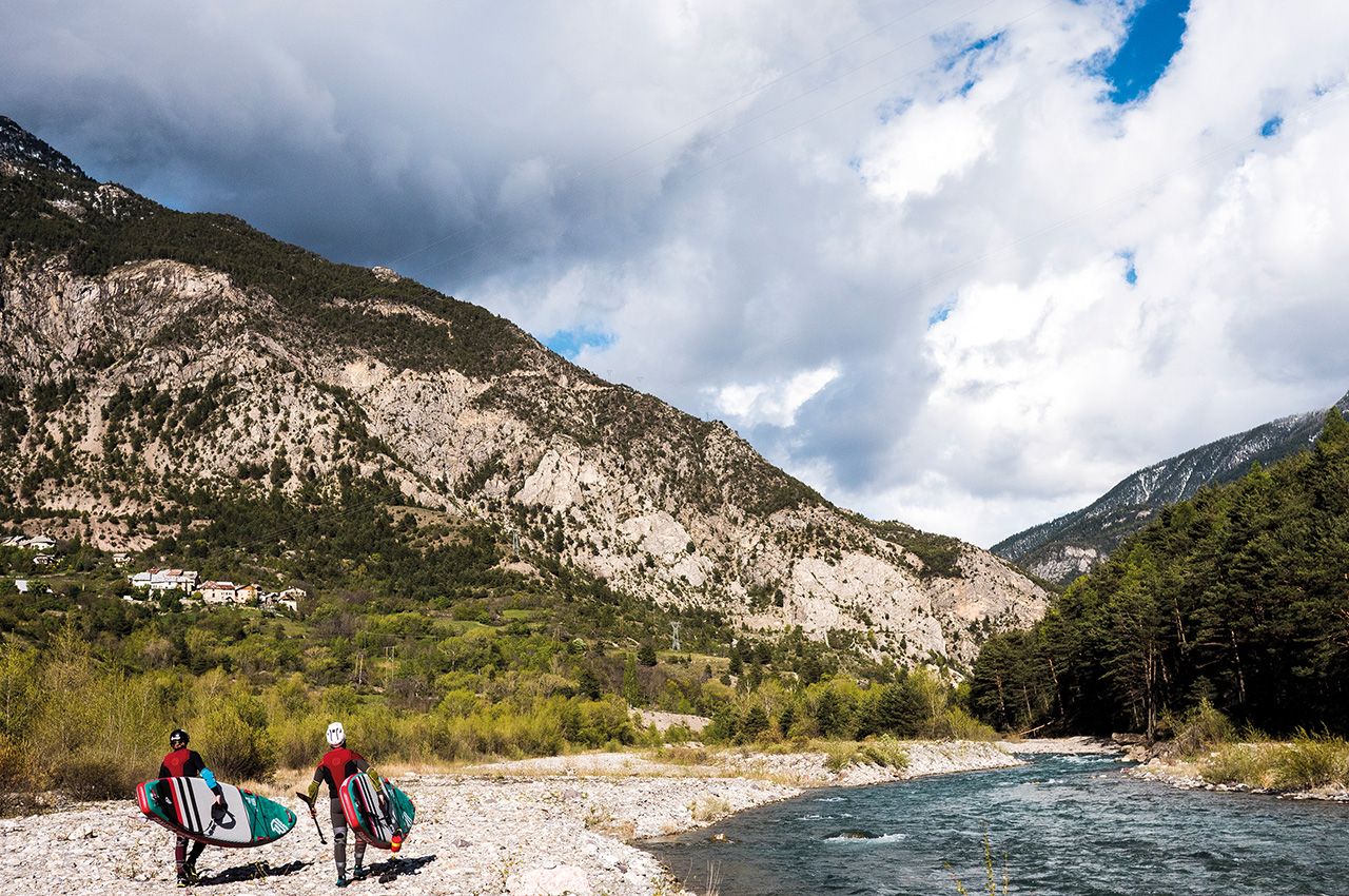 The morning starts with the same beautiful spring weather as yesterday and after a relaxed breakfast, we head to our next stop. We drive through lonely old villages, where there are more sheep than humans, or so it seems. The bumpy dirt roads it goes straight to the put-in. The small tributary of the French Durance known for whitewater athletes, is only a few kilometres long but worth it for whitewater SUP.