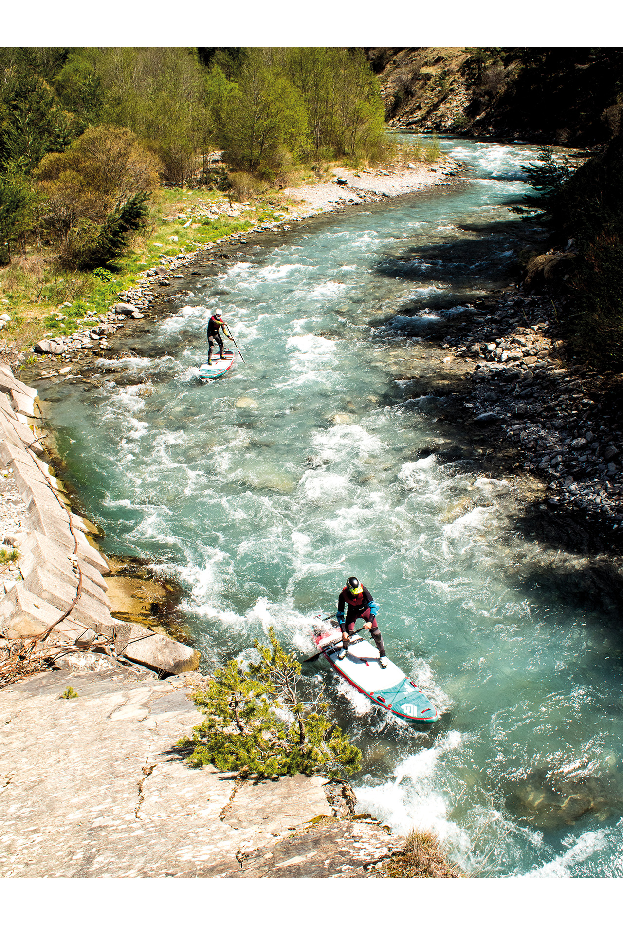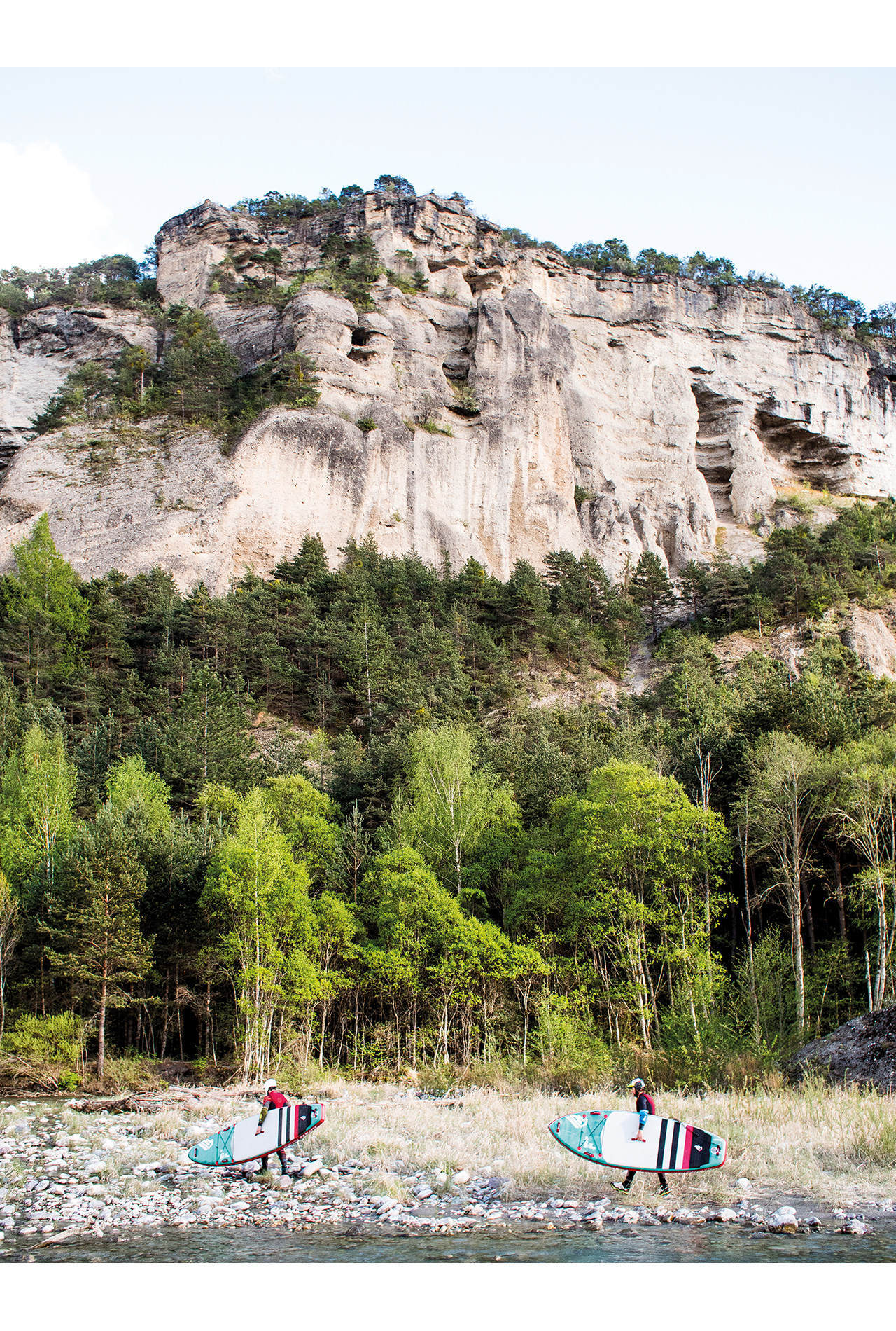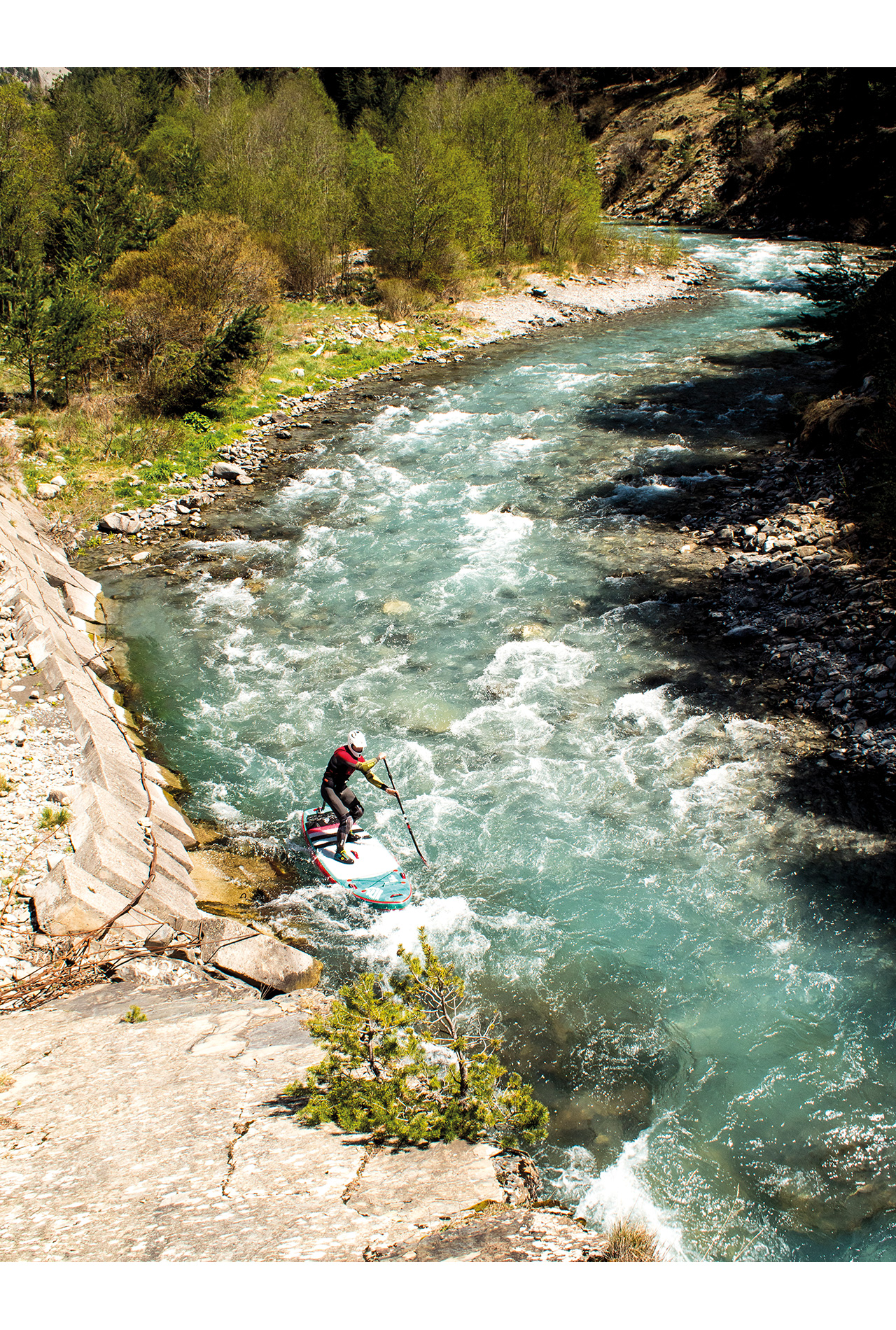 The morning starts with the same beautiful spring weather as yesterday and after a relaxed breakfast, we head to our next stop. We drive through lonely old villages, where there are more sheep than humans, or so it seems. The bumpy dirt roads it goes straight to the put-in. The small tributary of the French Durance known for whitewater athletes, is only a few kilometres long but worth it for whitewater SUP.